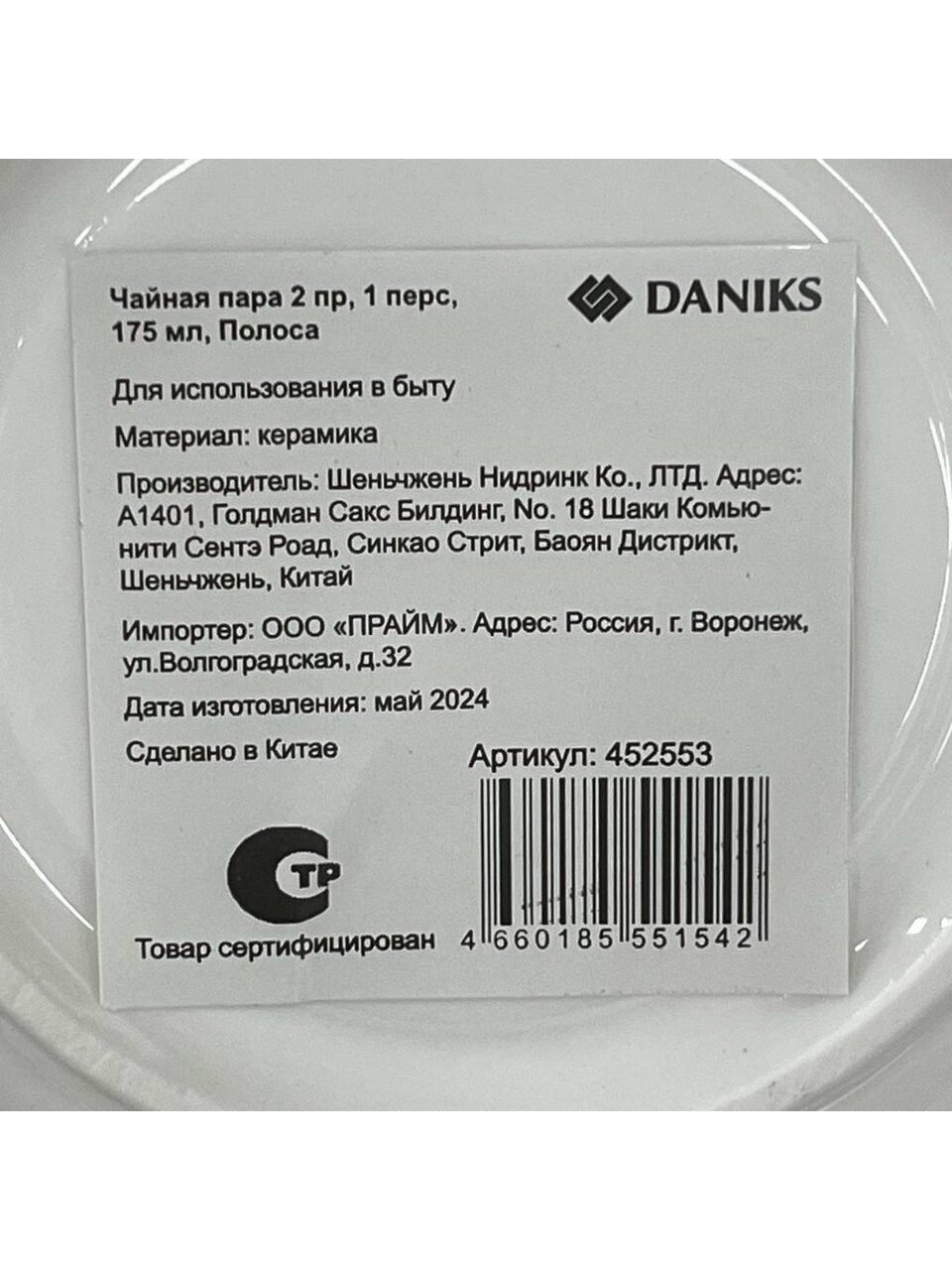 Вы можете приобрести «Чайная пара керамика, 2 предмета, на 1 персону, 175 мл, Daniks, Полоса, Y4-7609» и другие товары в нашем интернет-магазине в Тамбове по низким ценам и с бесплатным самовывозом.
