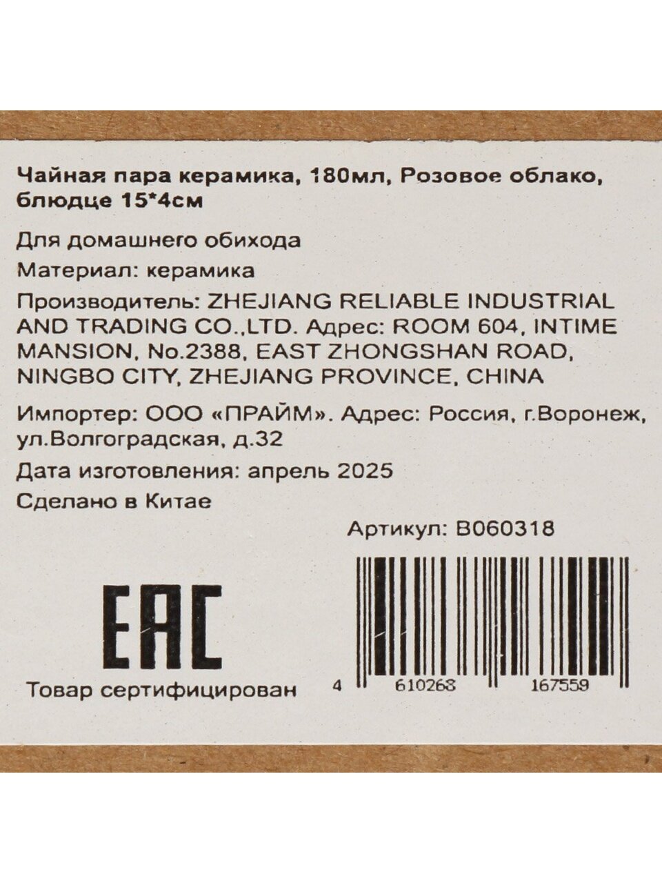 Вы можете приобрести «Чайная пара керамика, 2 предмета, на 1 персону, 180 мл, Розовое облако, блюдце 15х4 см, B060318» и другие товары в нашем интернет-магазине в Орле по низким ценам и с бесплатным самовывозом.