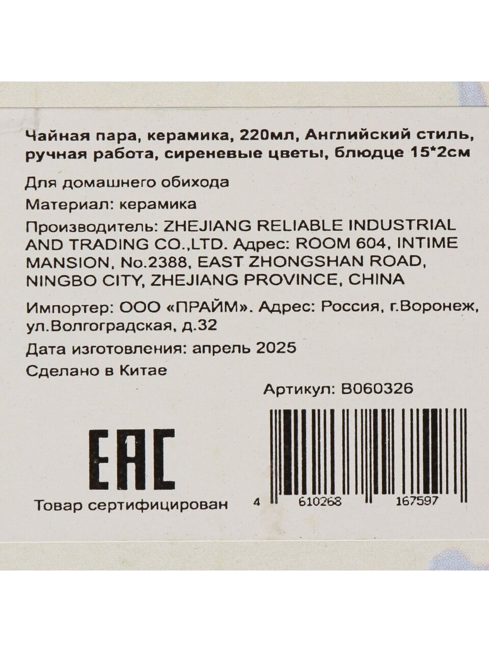 Вы можете приобрести «Чайная пара керамика, 2 предмета, на 1 персону, 220 мл, Английский стиль, сиреневые цветы, ручная работа, блюдце 15х2 см, B060326» и другие товары в нашем интернет-магазине в Твери по низким ценам и с бесплатным самовывозом.