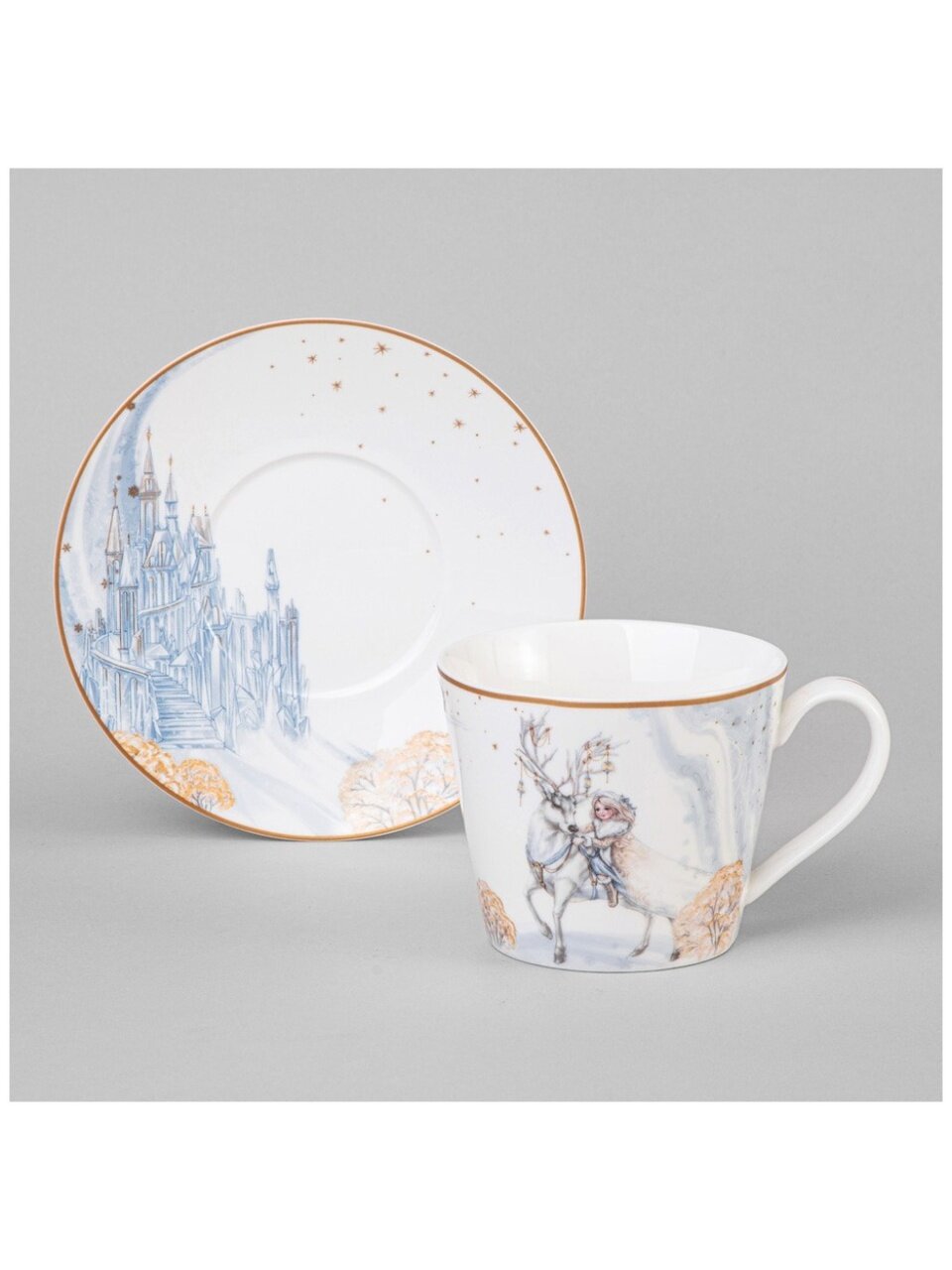 Чайная пара Lefard «Снежная королева» 300 мл: элегантный фарфор для новогоднего уюта и стильного подарка — доступно, практично, долговечно.