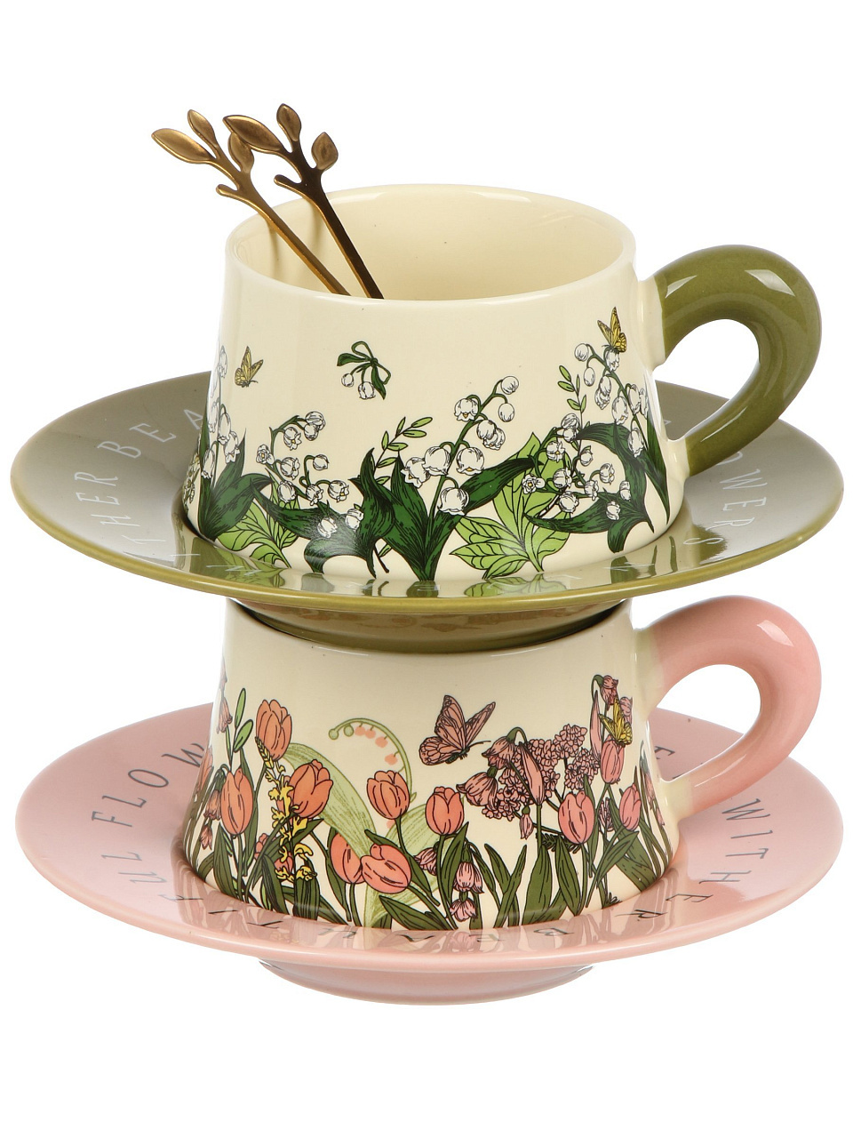 Чайная пара из фарфора «Букет» на 2 персоны (6 предметов): стильный подарок для дома и дачи, идеальна для чая и кофе, уже с ложками в комплекте.