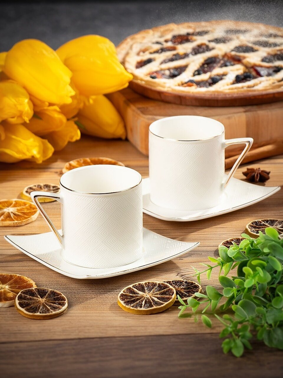 - В наборе 2 чашки и 2 блюдца.