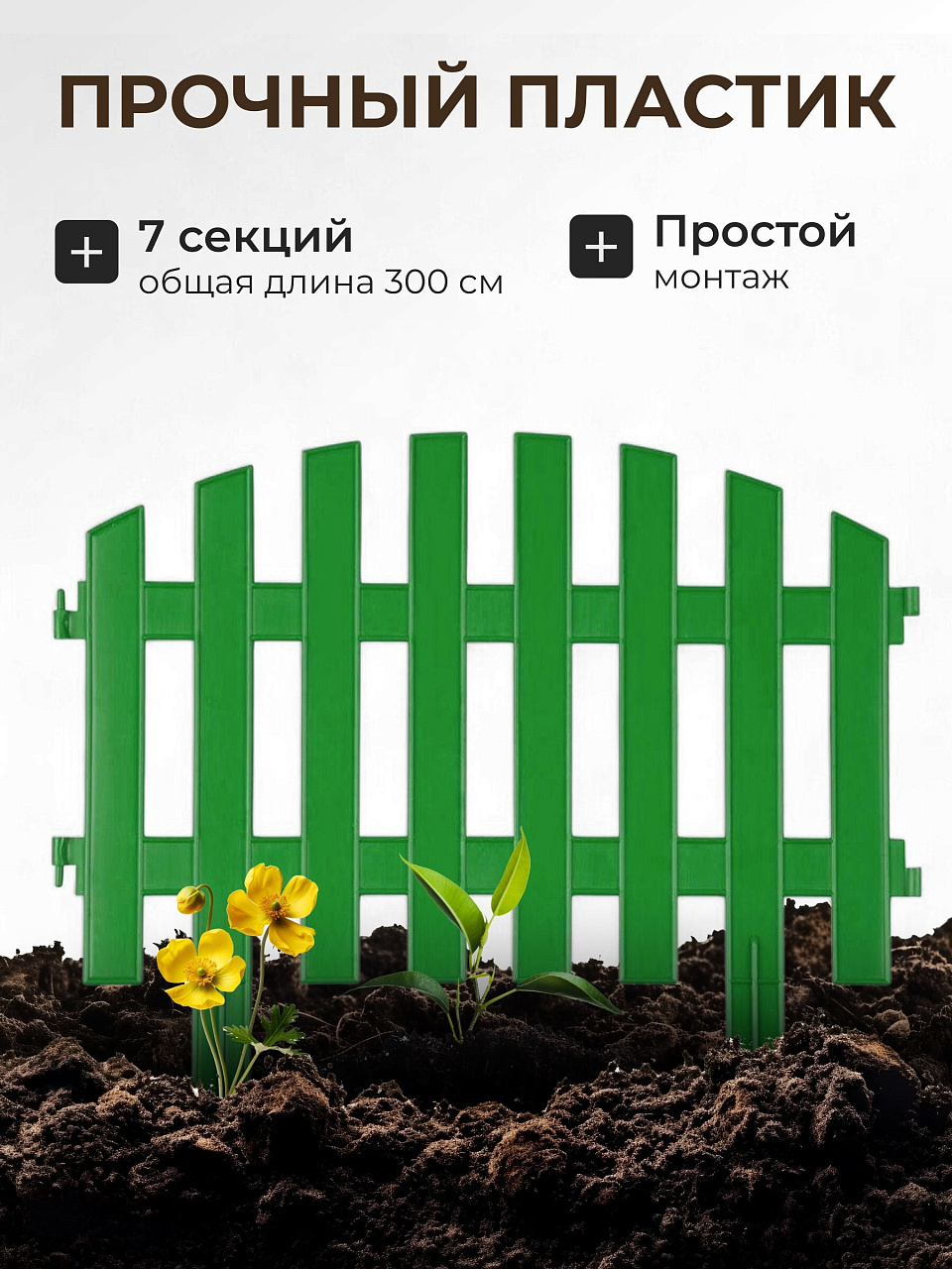 - Легкость монтажа: состоит из 7 секций, общая длина 300 см, что позволяет быстро и легко установить забор.