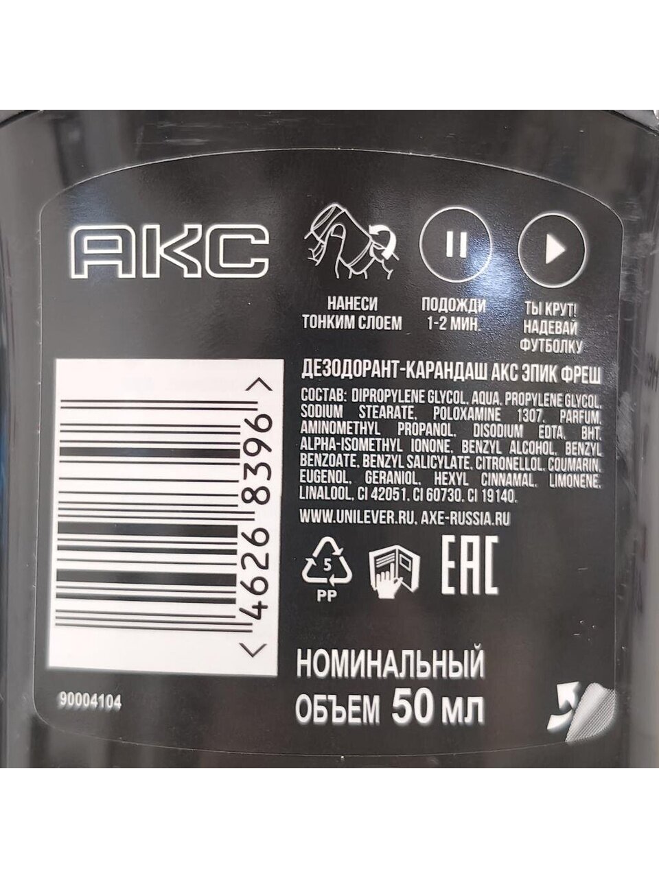 Вы можете приобрести «Дезодорант Axe, Epic Fresh, для мужчин, стик, 50 мл» и другие товары в нашем интернет-магазине в Казани по низким ценам и с бесплатным самовывозом.