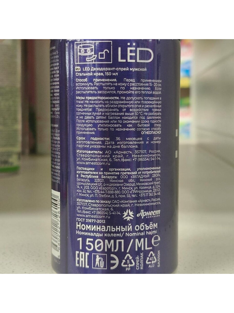 Откройте для себя дезодорант LЁD "Стальной нрав" — идеальный выбор для мужчин, которые ценят свежесть и уверенность каждый день. Этот спрей объемом 150 мл обеспечит надежную защиту и комфорт в течение всего дня.