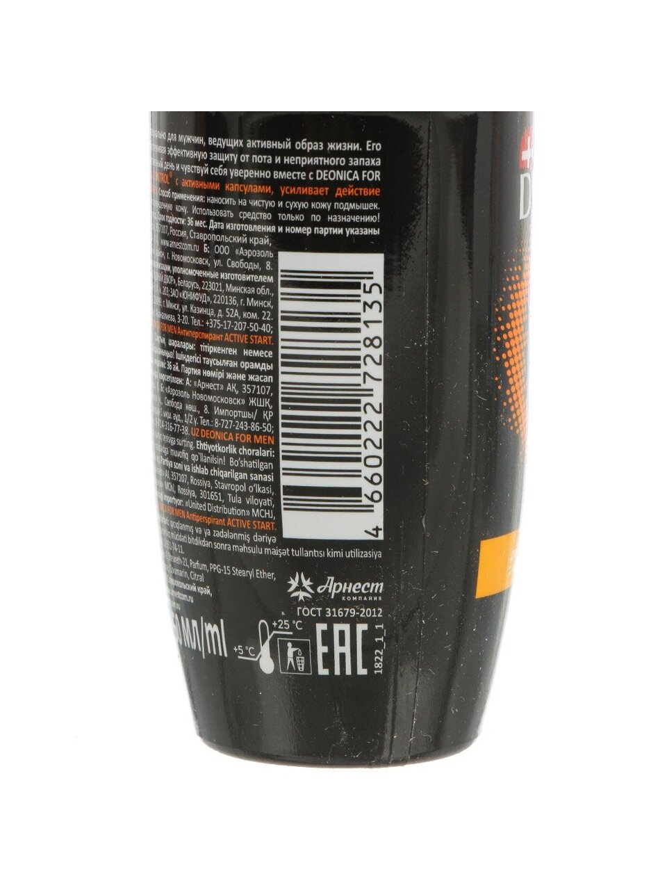 Deonica Active start — мужской роликовый дезодорант 50 мл: уверенность без запаха пота до 48 часов, компактный формат, экономия времени и средств.