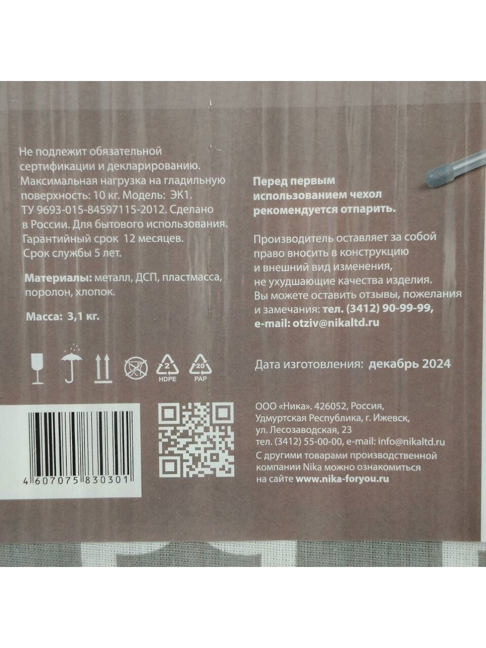 Гладильная доска Nika ЭК1 – это идеальное решение для тех, кто ищет простое и надежное средство для глажки без лишних затрат. Отсутствие дополнительных элементов делает конструкцию максимально легкой и удобной, а также облегчает процесс складывания и хранения.