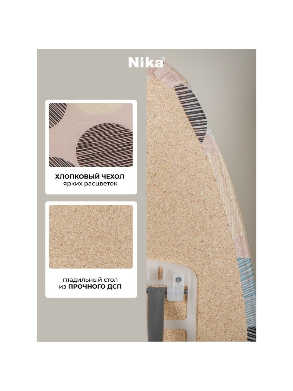 Гладильная доска Nika ЭК1 предназначена для эффективной глажки одежды и белья. Деревянная основа рабочей поверхности(ДСП) обеспечивает устойчивость и долговечность, а хлопковый чехол способствует легкому скольжению утюга и аккуратному результату. Размер рабочей поверхности: 107х29 см. Благодаря регулировке высоты в двух положениях, можно выбрать наиболее комфортный уровень работы, что особенно важно для сохранения здоровья спины и рук.