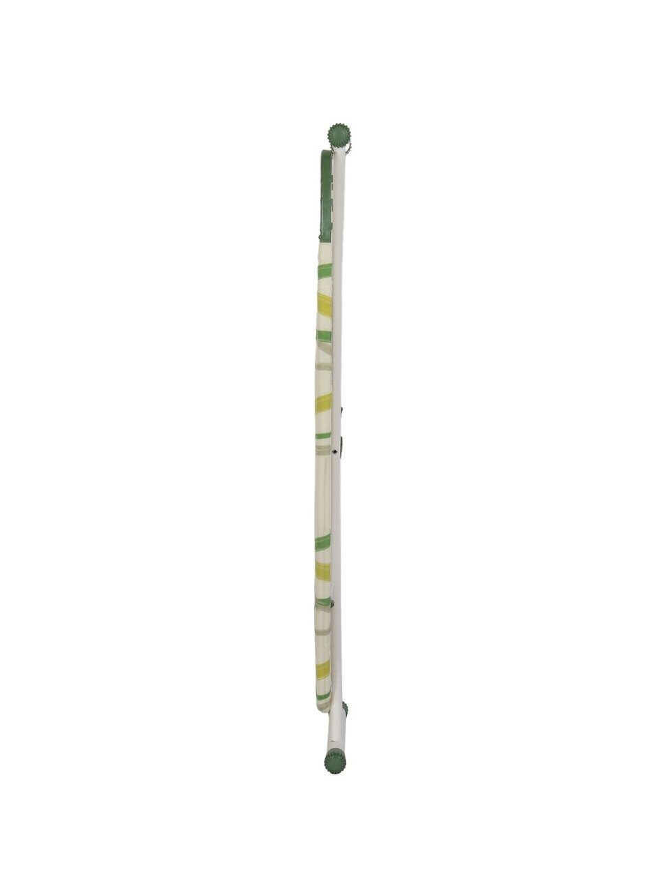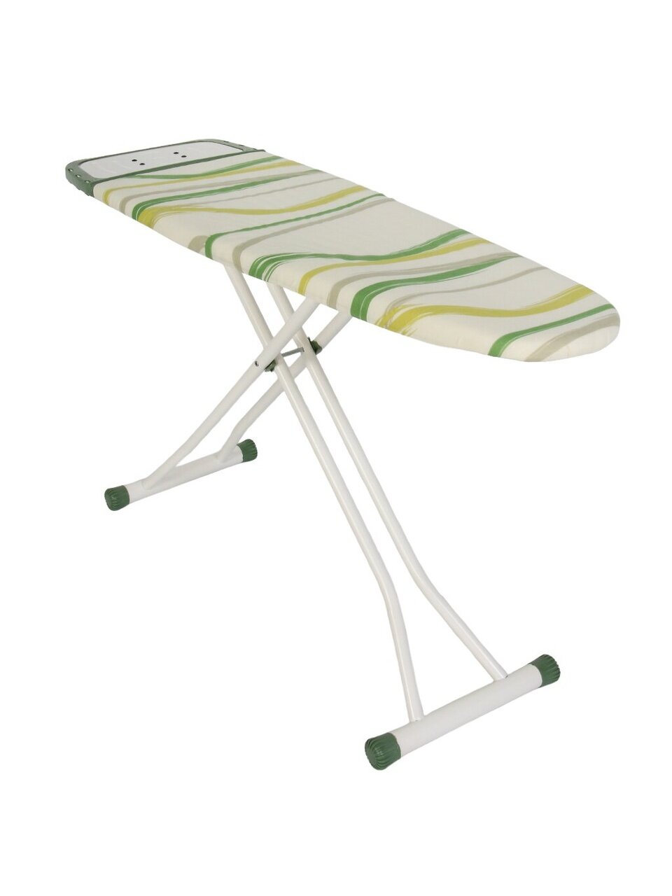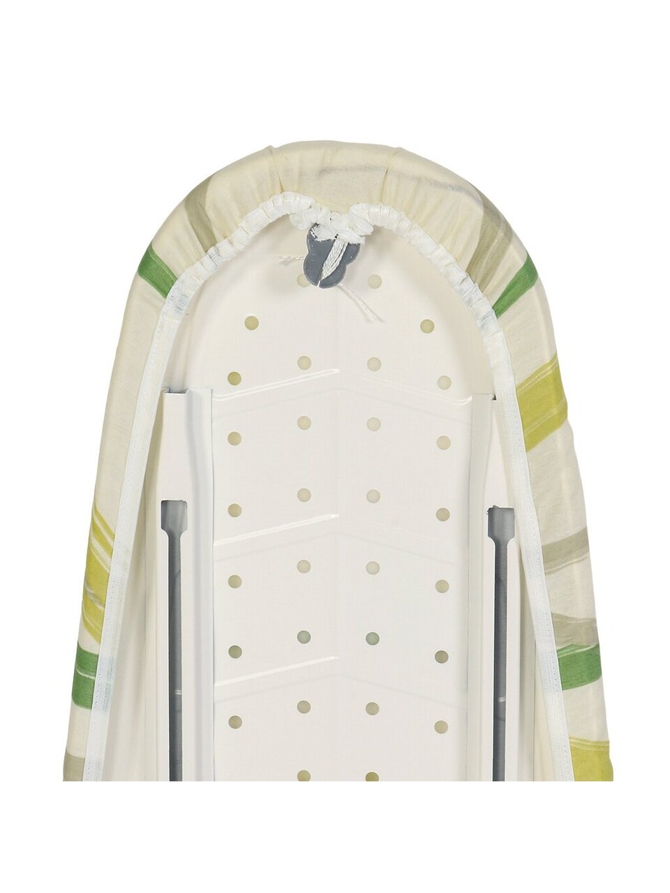 Столешница выполнена из стали, чехол — из натурального хлопка. Это гарантирует долгий срок службы и безопасную глажку без следов на одежде.
