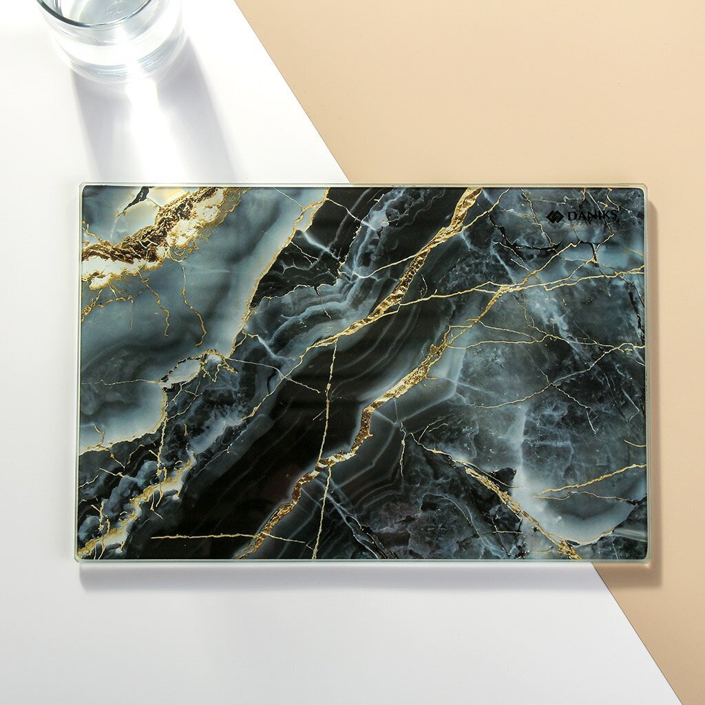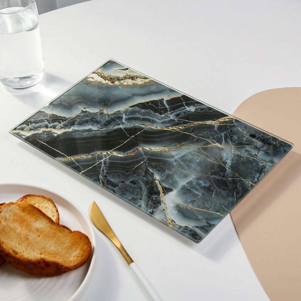 - Уникальный дизайн: стеклянная доска с темным флюидным рисунком гармонично впишется в современный интерьер;