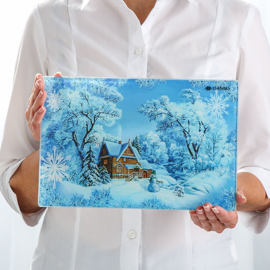Стеклянная разделочная доска Daniks 30х20 см: стильная защита поверхности кухни, универсальна для хлеба, мяса, овощей. Легко мыть, не впитывает запахи.