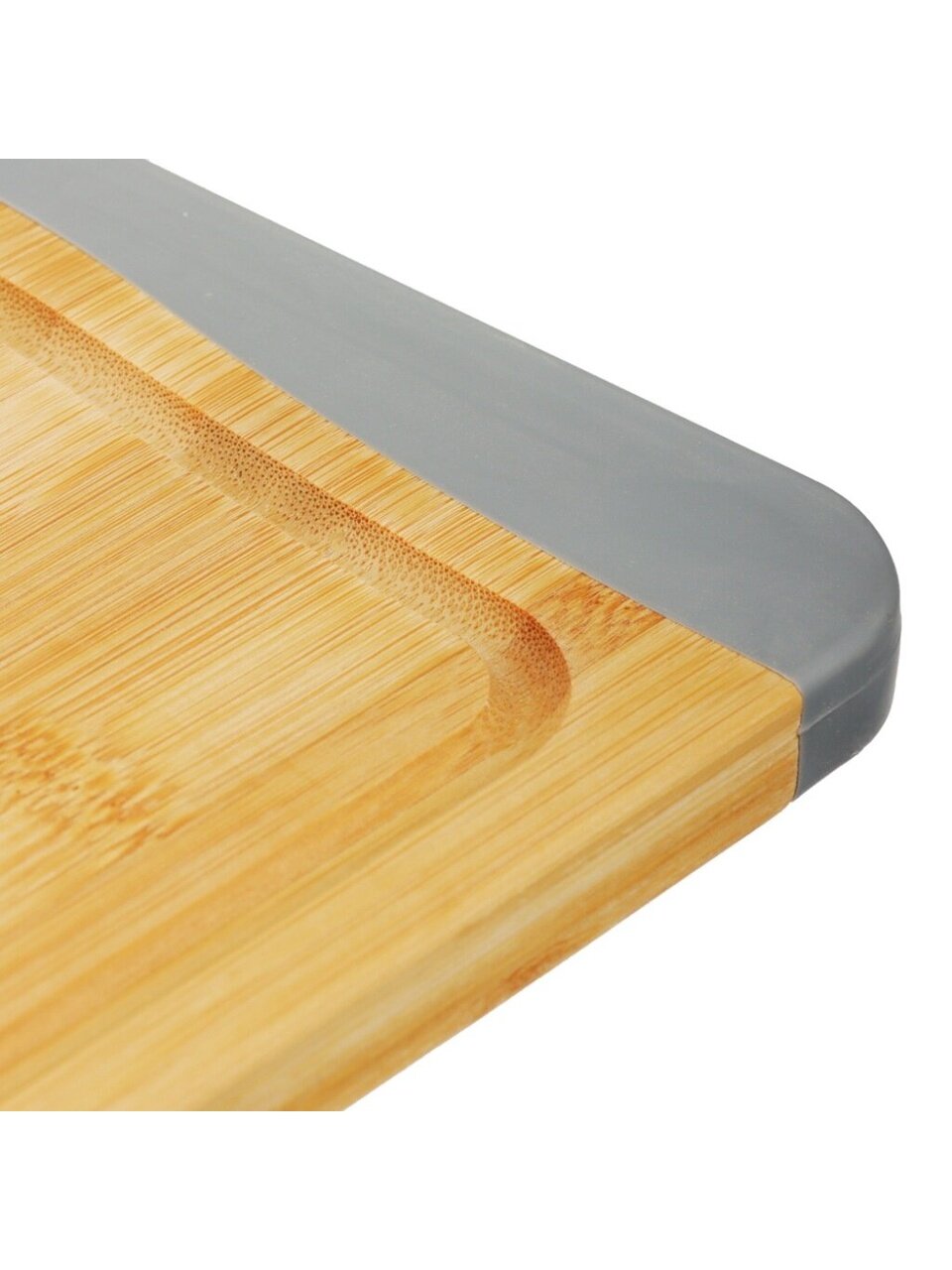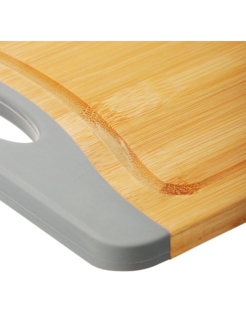 Доска выполнена из натурального бамбука, что гарантирует прочность и долговечность, а также придает изделию привлекательный бежевый цвет. Силиконовые вставки обеспечивают дополнительную устойчивость на рабочей поверхности, предотвращая скольжение во время использования. Прямоугольная форма с удобной ручкой позволяет легко перемещать и подвешивать доску, освобождая место на кухонном столе.