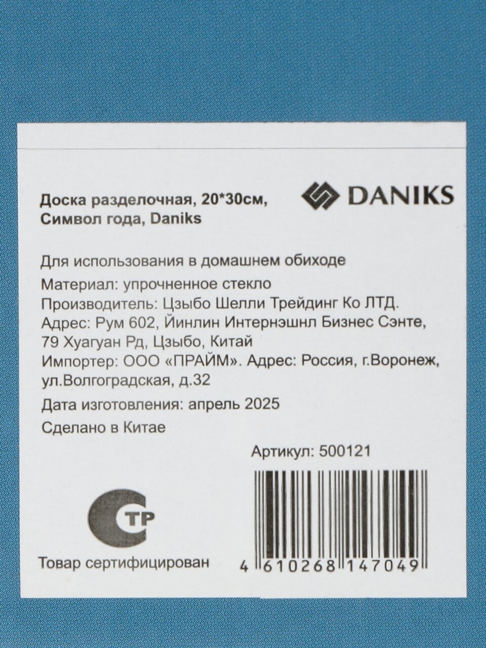 Доска разделочная, стекло, 20х30 см, Символ года, Daniks