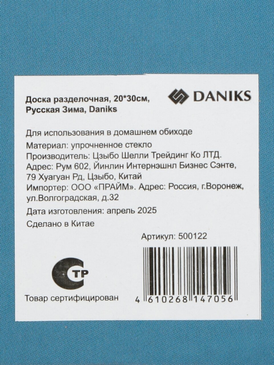 Доска разделочная, стекло, 20х30 см, Русская Зима, Daniks