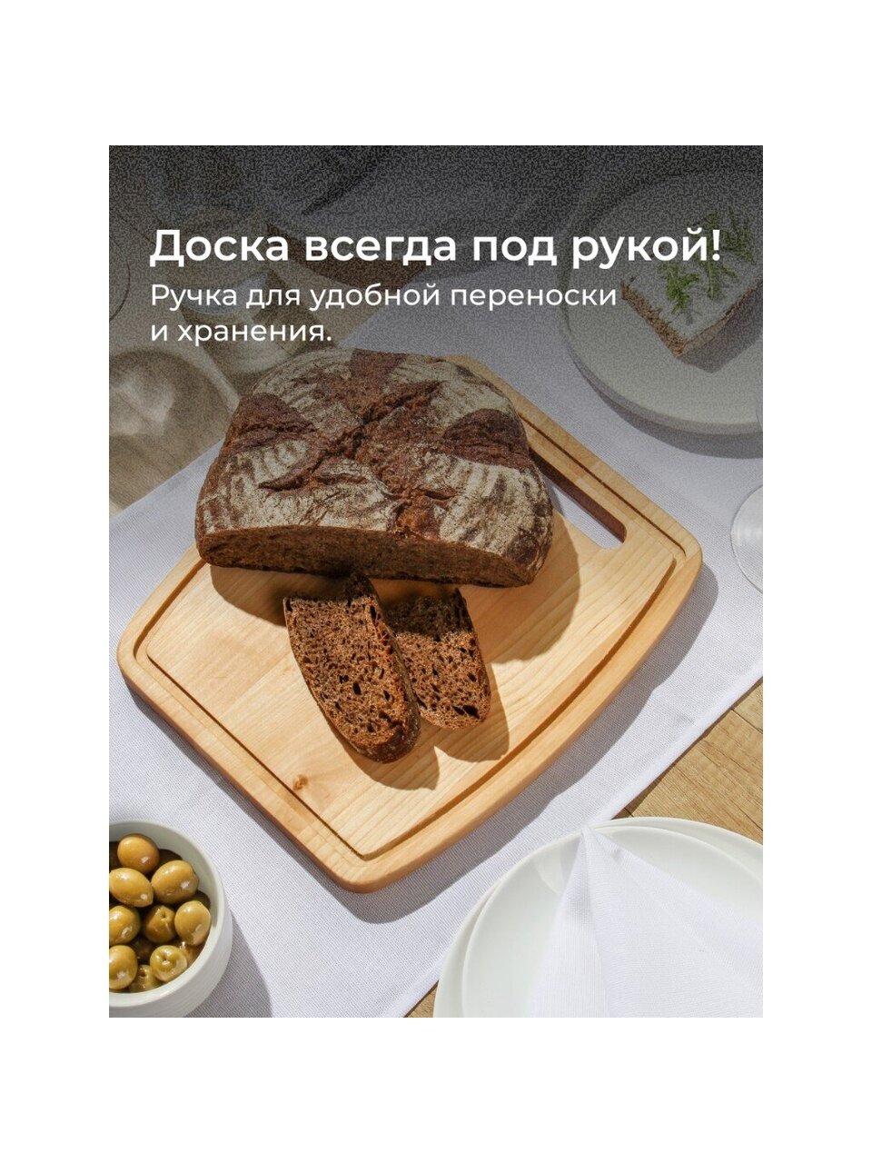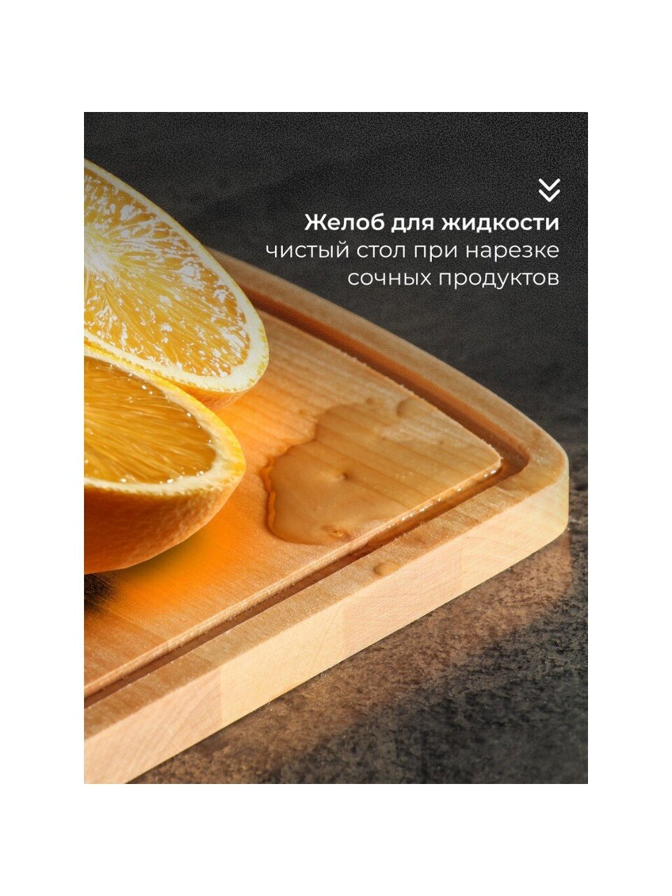 Доска подходит для нарезки мяса, рыбы, овощей, фруктов, хлеба, а также для красивой сервировки на столе. Размер 30х25 см обеспечивает достаточно места для обработки продуктов и удобен для хранения благодаря подвесной конструкции. Специальная канавка по краю защищает рабочую поверхность от лишней влаги и сока, сохраняя чистоту на кухне. Эргономичная ручка облегчает перенос доски и позволяет удобно размещать ее на крючке или рейлинге.