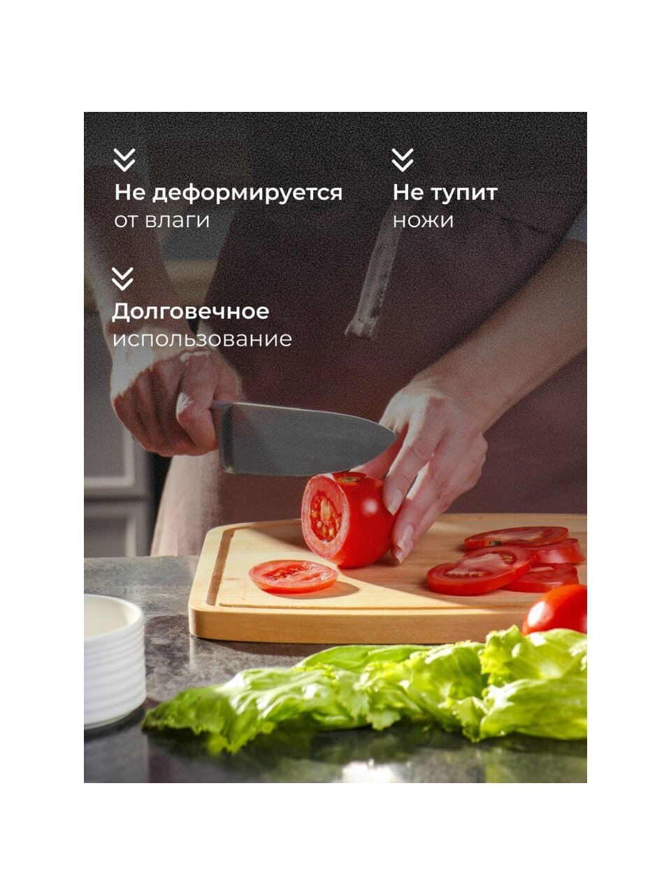- универсальное назначение: для мяса, рыбы, овощей, фруктов, хлеба, сервировки;