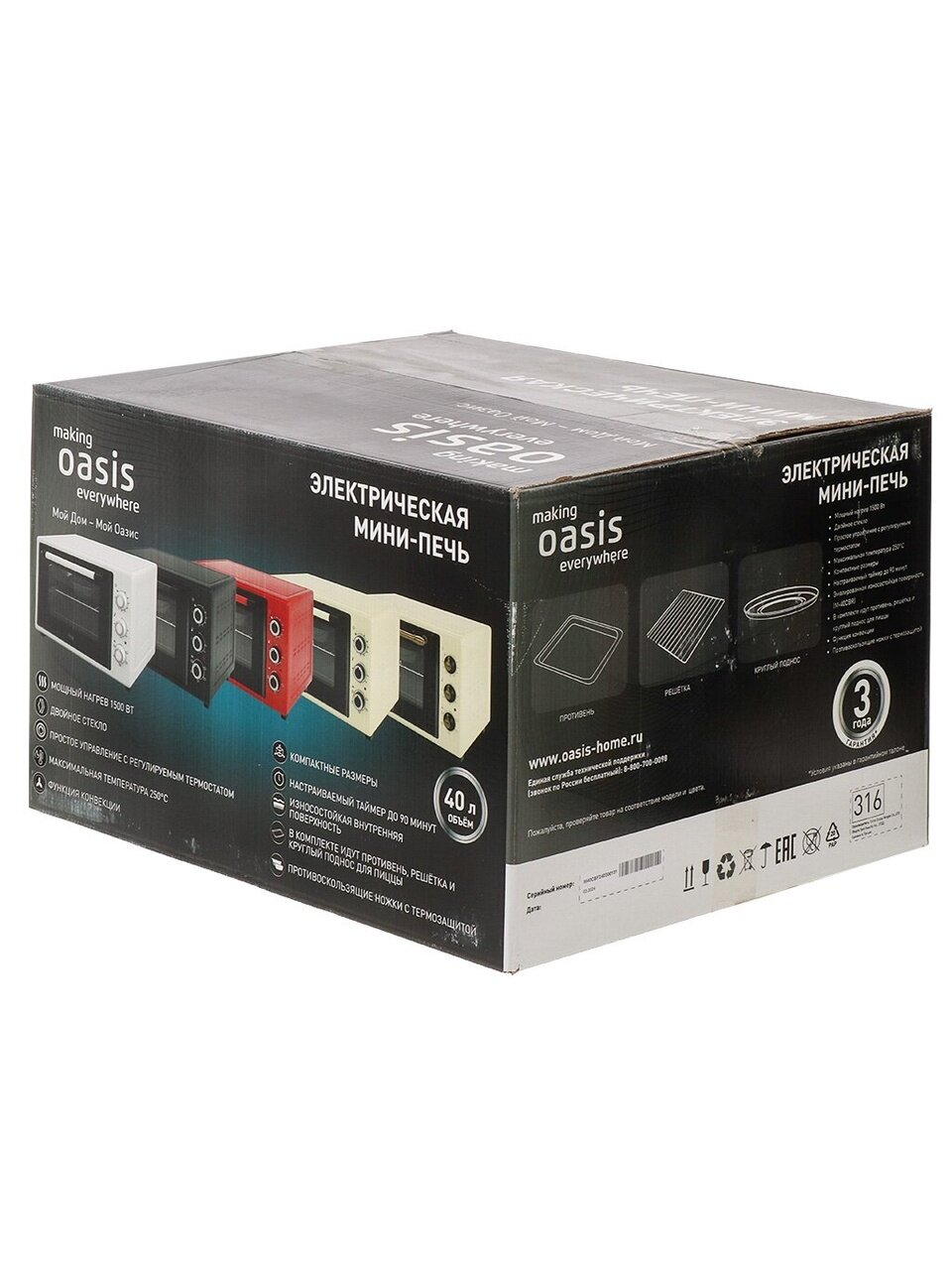 Вы можете приобрести «Духовка электрическая, Oasis, everywhere, 40 л, 1500 Вт, с термостатом, черная, M-40CB» и другие товары в нашем интернет-магазине в Старом Осколе по низким ценам и с бесплатным самовывозом.