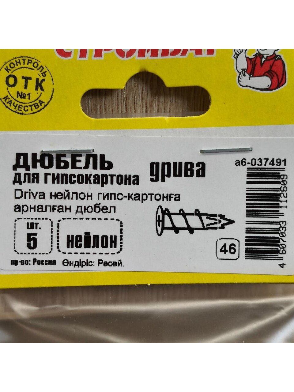 Вы можете приобрести «Дюбель для гипсокартона, нейлон, 5 шт, Стройбат, driva, 037491» и другие товары в нашем интернет-магазине в Старом Осколе по низким ценам и с бесплатным самовывозом.