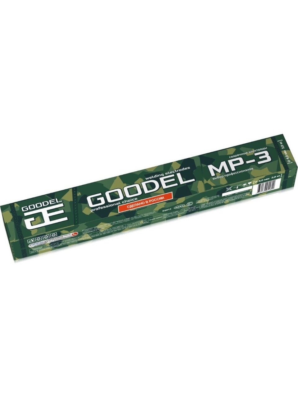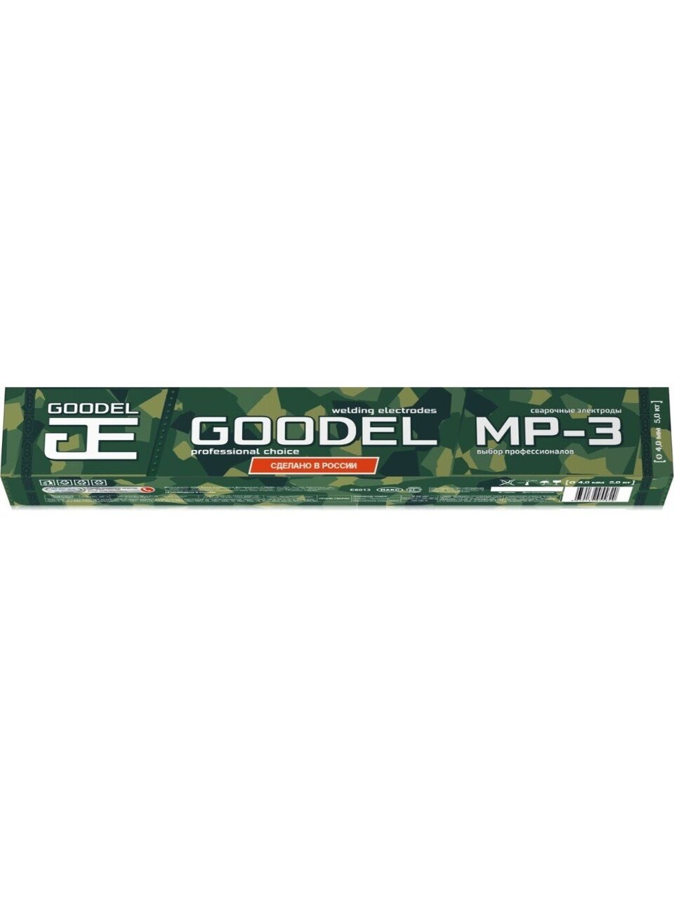 Сварочные электроды GOODEL МР-3 с рутилово-целлюлозным покрытием предназначены для ручной дуговой сварки ответственных конструкций из углеродистых и низколегированных сталей с временным сопротивлением разрыву до 500 МПа, когда к получаемым швам предъявляются повышенные требования.