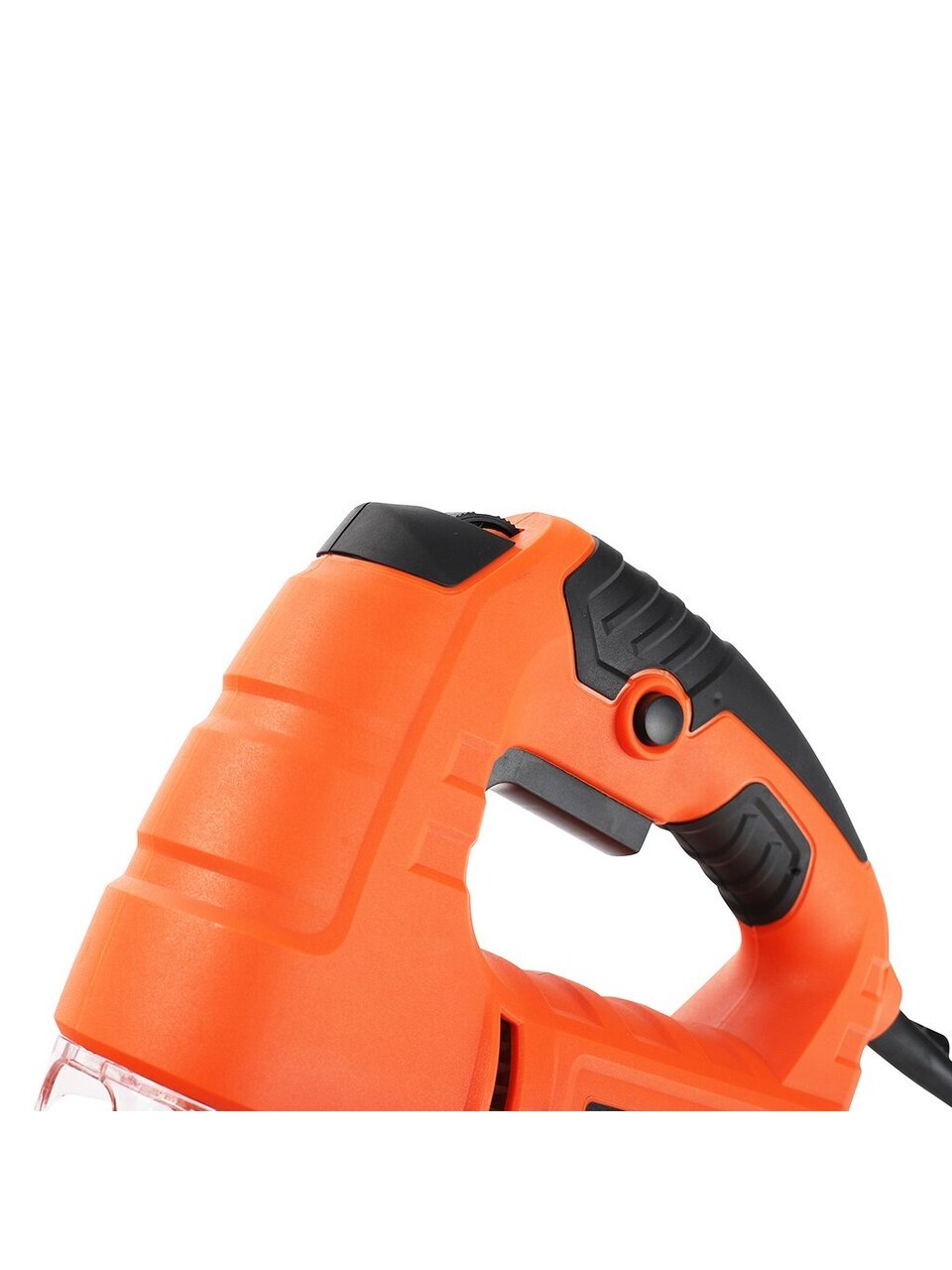Полезной функциональной особенностью является наличие регулятора скорости вращения. Он позволяет поставить прибор в нужный режим для работы с определенным материалом. Например, для пластика следует ставить небольшую скорость, так как материал достаточно хрупкий и может легко треснуть во время обработки. Если же необходимо сделать пропил алюминия, стали или какого-нибудь металла, то имеет смысл поставить наиболее мощный режим работы, чтобы лобзик на максимальной скорости быстро и качественно сделал разрез.