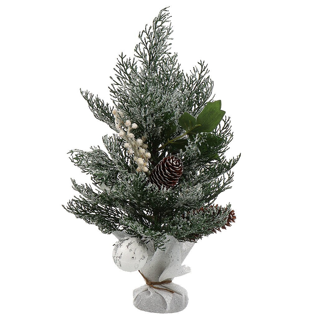 Настольная новогодняя елка 39 см: компактное зимнее украшение с заснеженными ветками, ягодами и шишками — уют и праздничное настроение для любого интерьера.