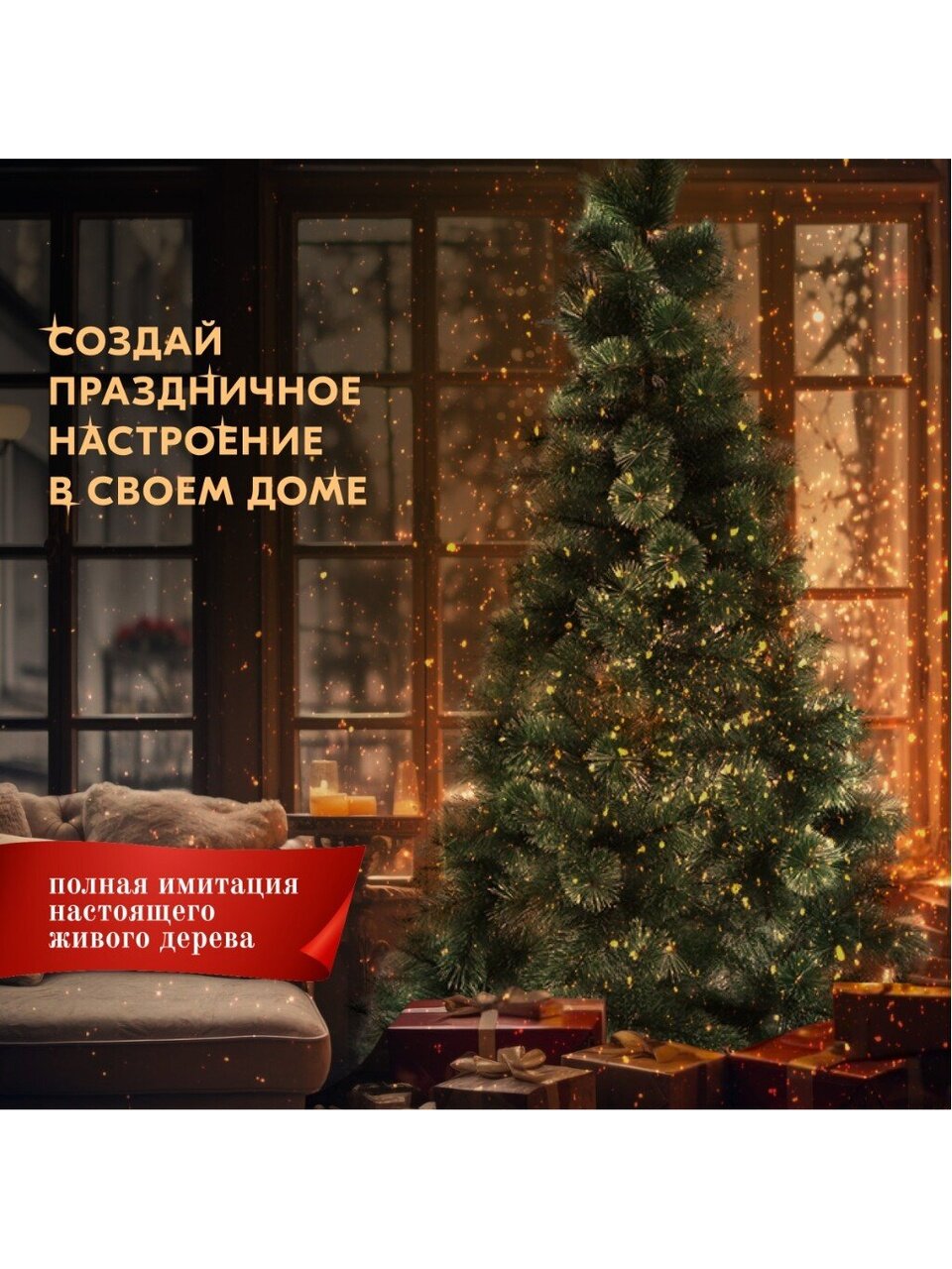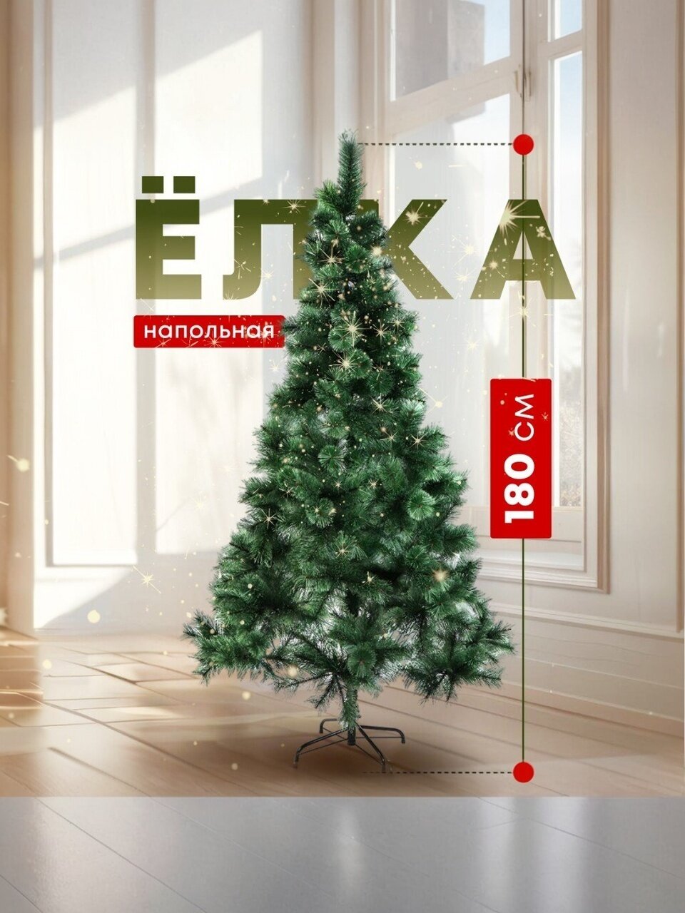 Елка новогодняя напольная 180 см «Мурманская» — эффектная хвойная сосна с густой леской, долговечная подставка из металла, экономия на покупке живого дерева и легкая сборка.