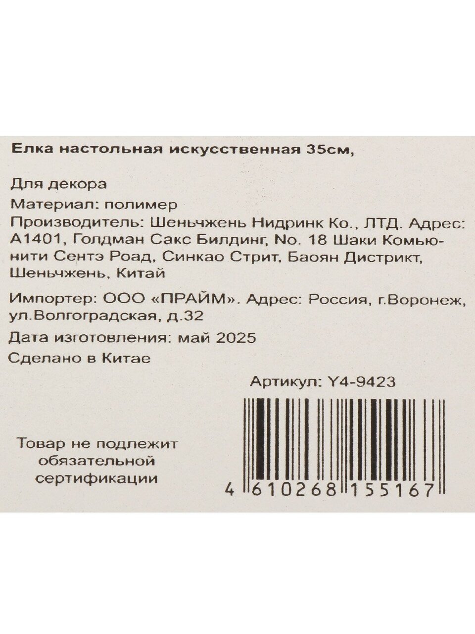 Высота этой настольной ели — 35 см. Она оптимальна для офисных столов, прикроватных тумб, полок и небольших пространств. Компактная конструкция не мешает работе и не занимает много места.
