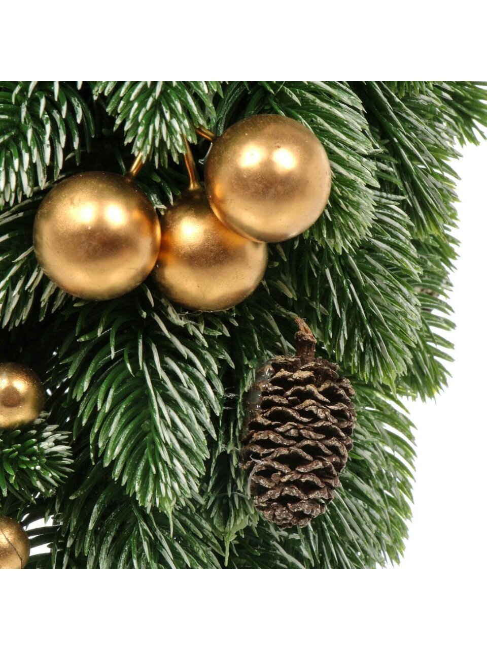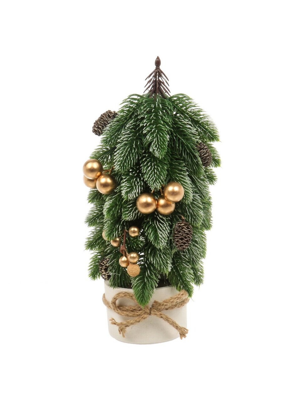 Настольная новогодняя елка 28 см с литой хвоей, декором и в кашпо — компактное решение для уютного праздника дома или в офисе, не требующее сборки.