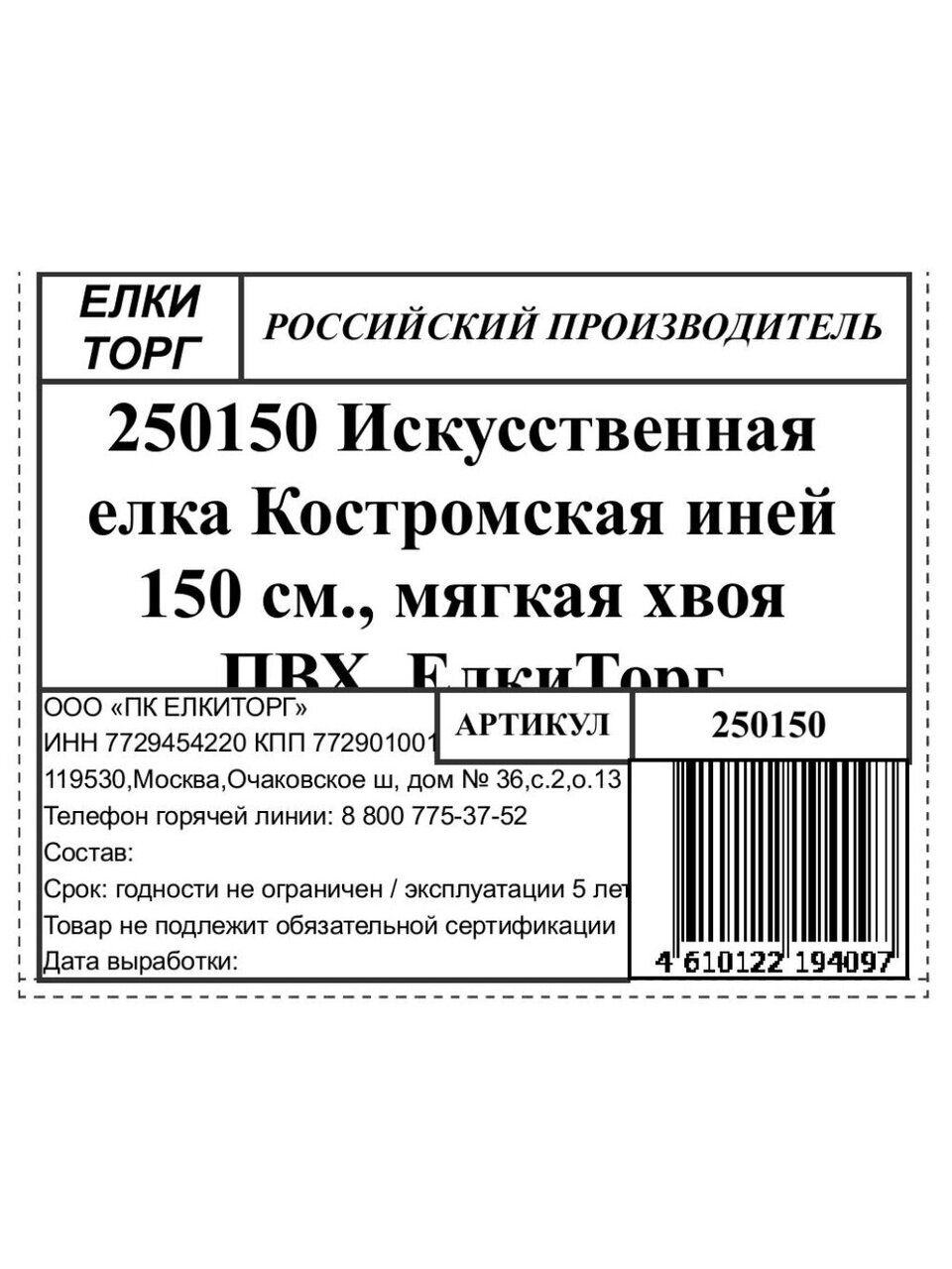 Елка напольная 150 см «Костромская» с инеем: эффект натуральной ели для уютного дома, быстрая сборка, долговечная хвоя — выгодное решение для вашей зимней атмосферы.