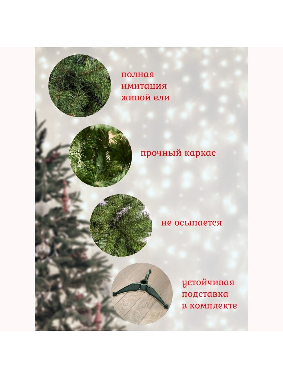 - Максимально натуральный облик благодаря густой хвое из ПВХ-пленки — выглядит как живая ель
