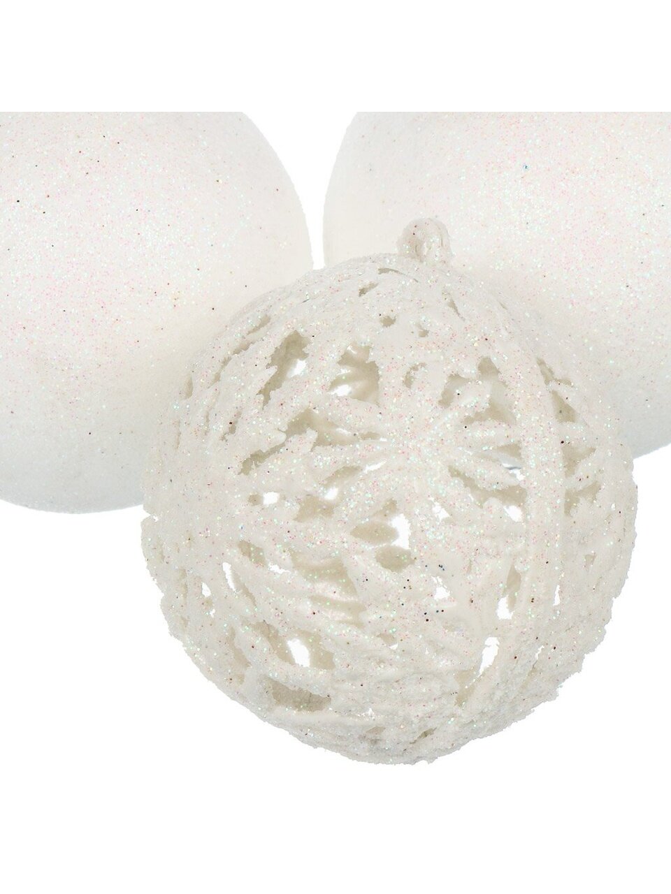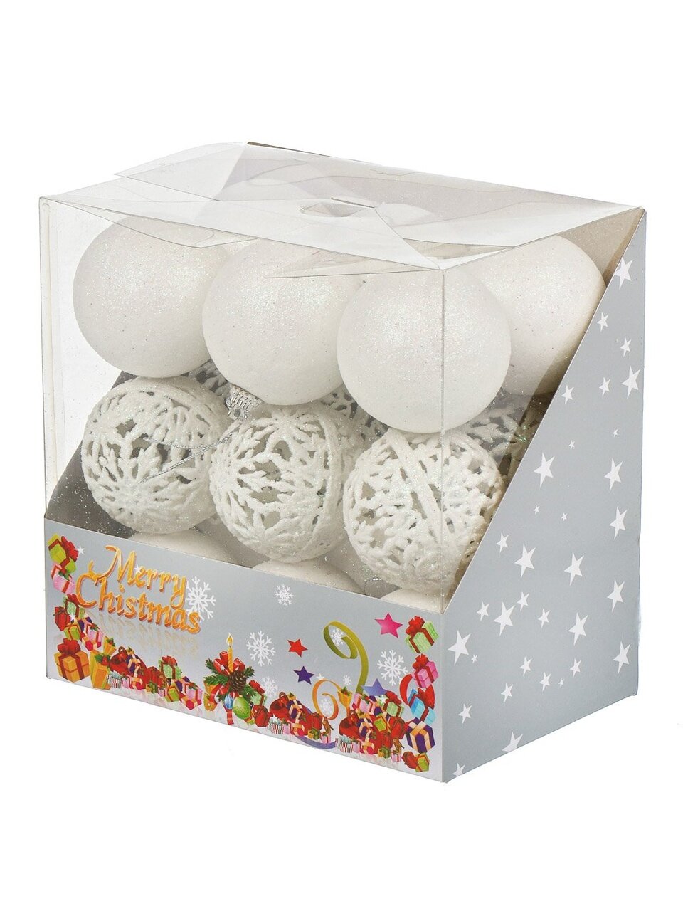 Белые шары 6 см, набор 18 шт: украсьте ёлку стильно и безопасно — прочный пластик, не бьются, подходят для детей и домашних животных.