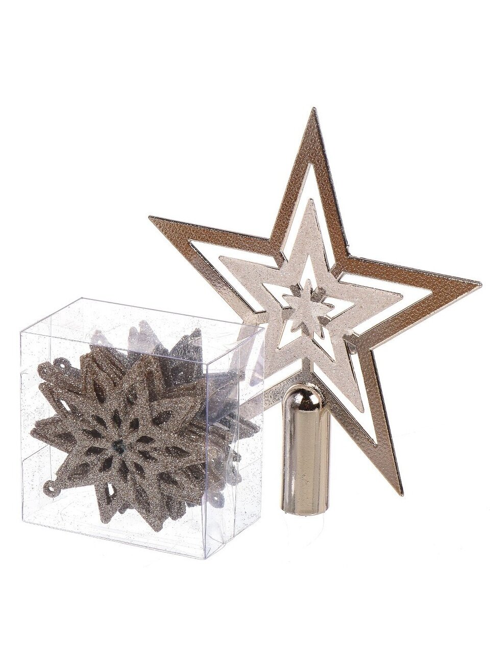 В комплекте 45 ёлочных украшений среднего размера, включая шары и верхушки, что удобно для стандартной ёлки высотой от 1,2 до 2 м.