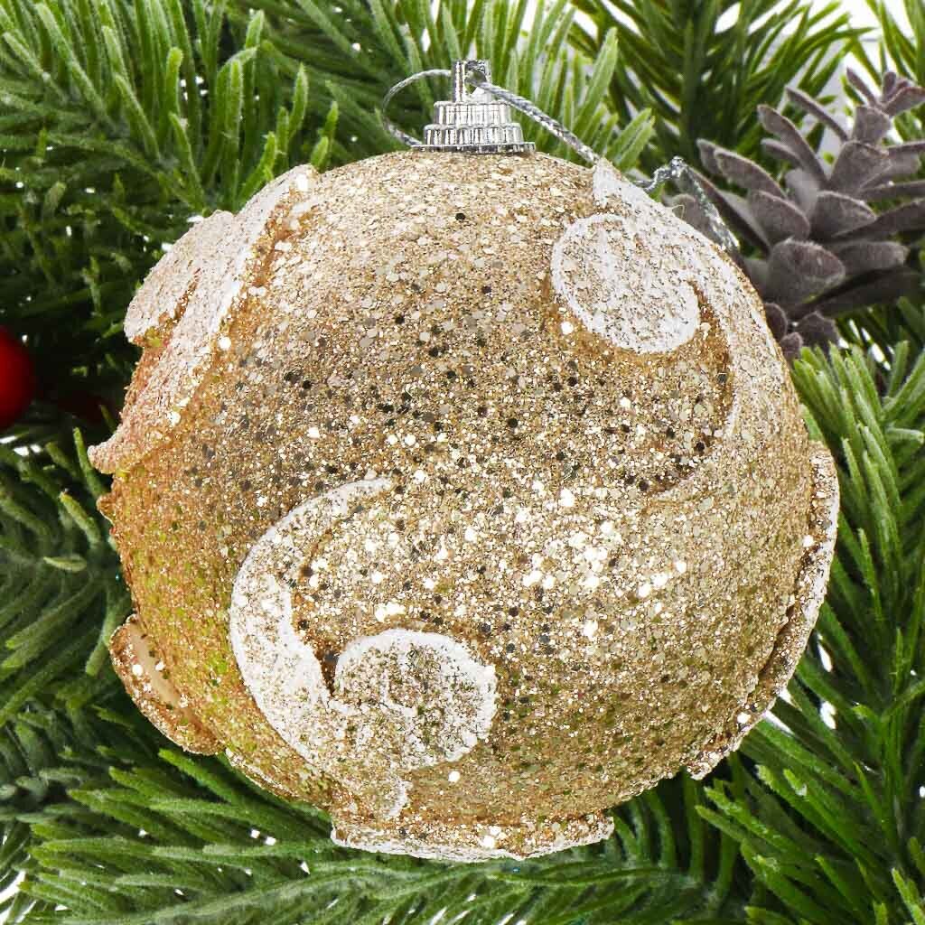 - Оптимальный размер 8 см, универсальный цвет шампань, лаконичный дизайн — подойдут для любой ёлки