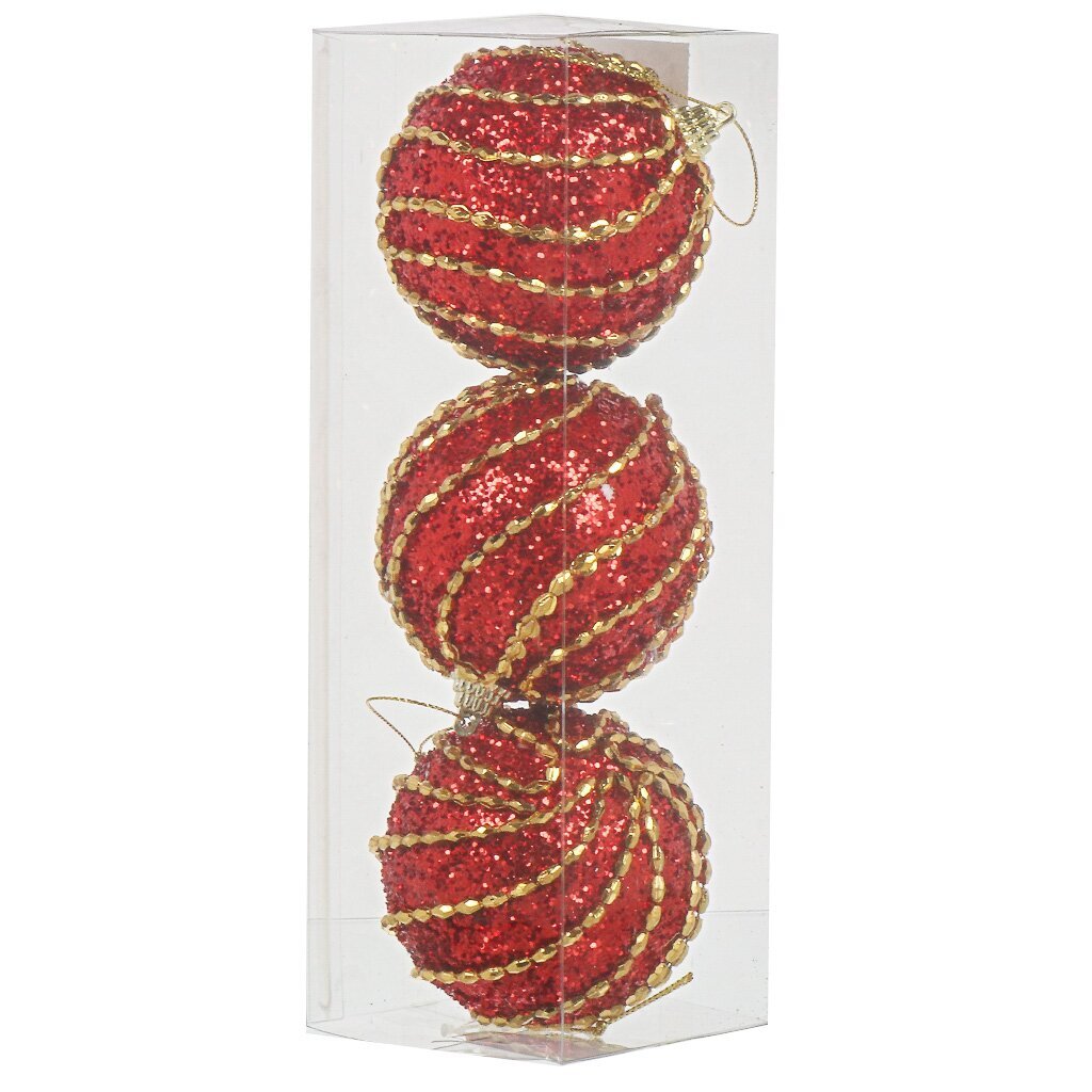 Набор елочных украшений 3 шт, красный, 8 см — стильный выбор для дома и улицы: небьющийся пластик, винтажный дизайн, идеален для подарка и дачи.