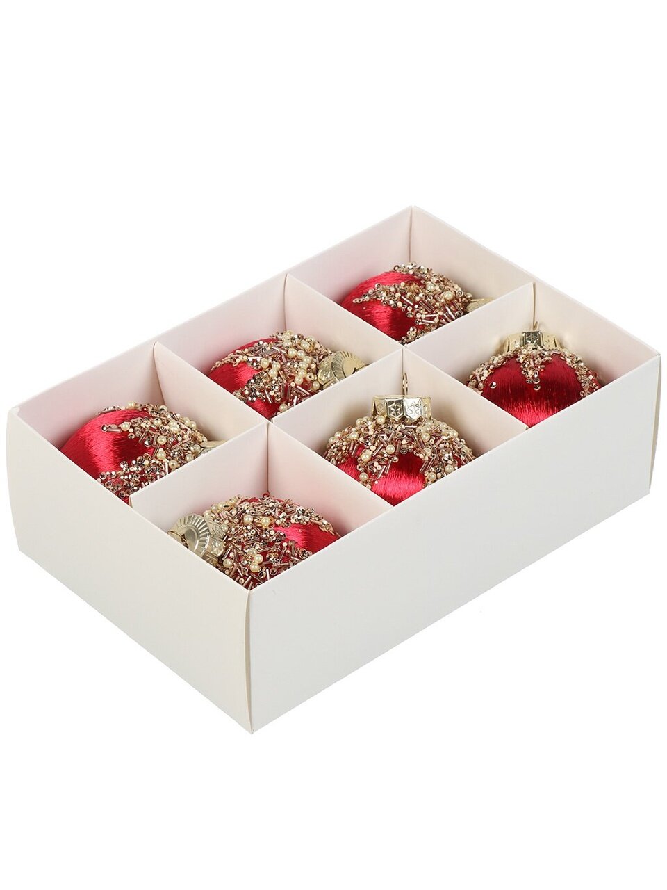 Набор ёлочных шаров 8 см, красный с золотом, 6 шт: стильный декор для дома и улицы, который не разобьётся и прослужит не один сезон.