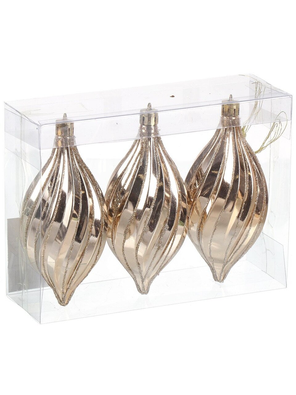 Набор елочных украшений Веретено, 3 шт, шампань — стильный декор для новогодней елки: небьющийся пластик, универсальный размер, премиальный глянец по доступной цене.