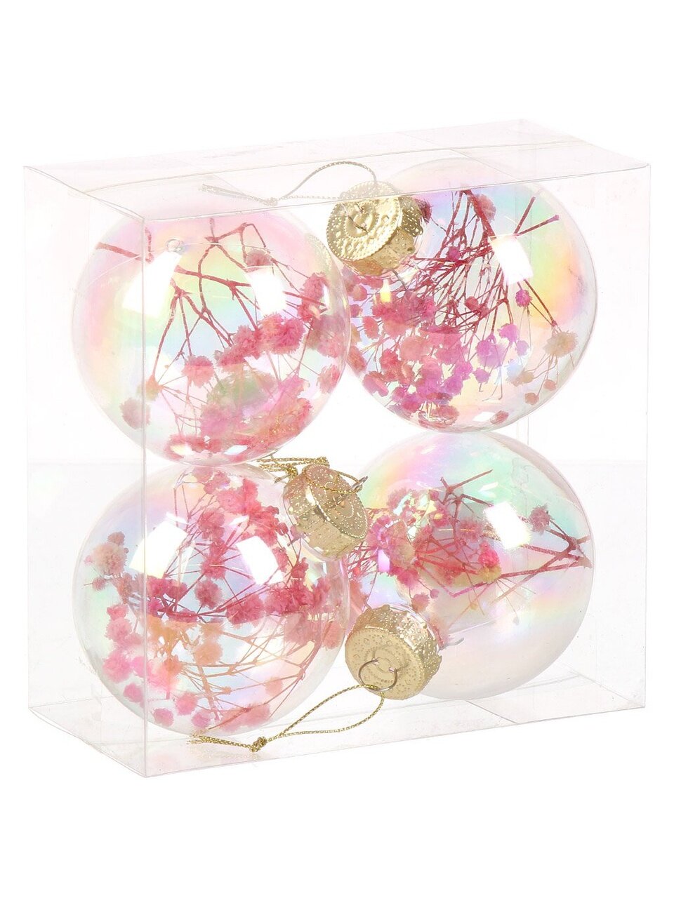 Набор из 4 прозрачных розовых шаров диаметром 8 см — это современное решение для украшения елки дома, в офисе или на даче. Каждый шар выполнен из прочного пластика, что исключает риск разбивания и делает их оптимальным выбором для семей с детьми и питомцами. Внутри каждого шара — стильная композиция, создающая эффект объемного декора и подчеркивающая праздничную атмосферу.