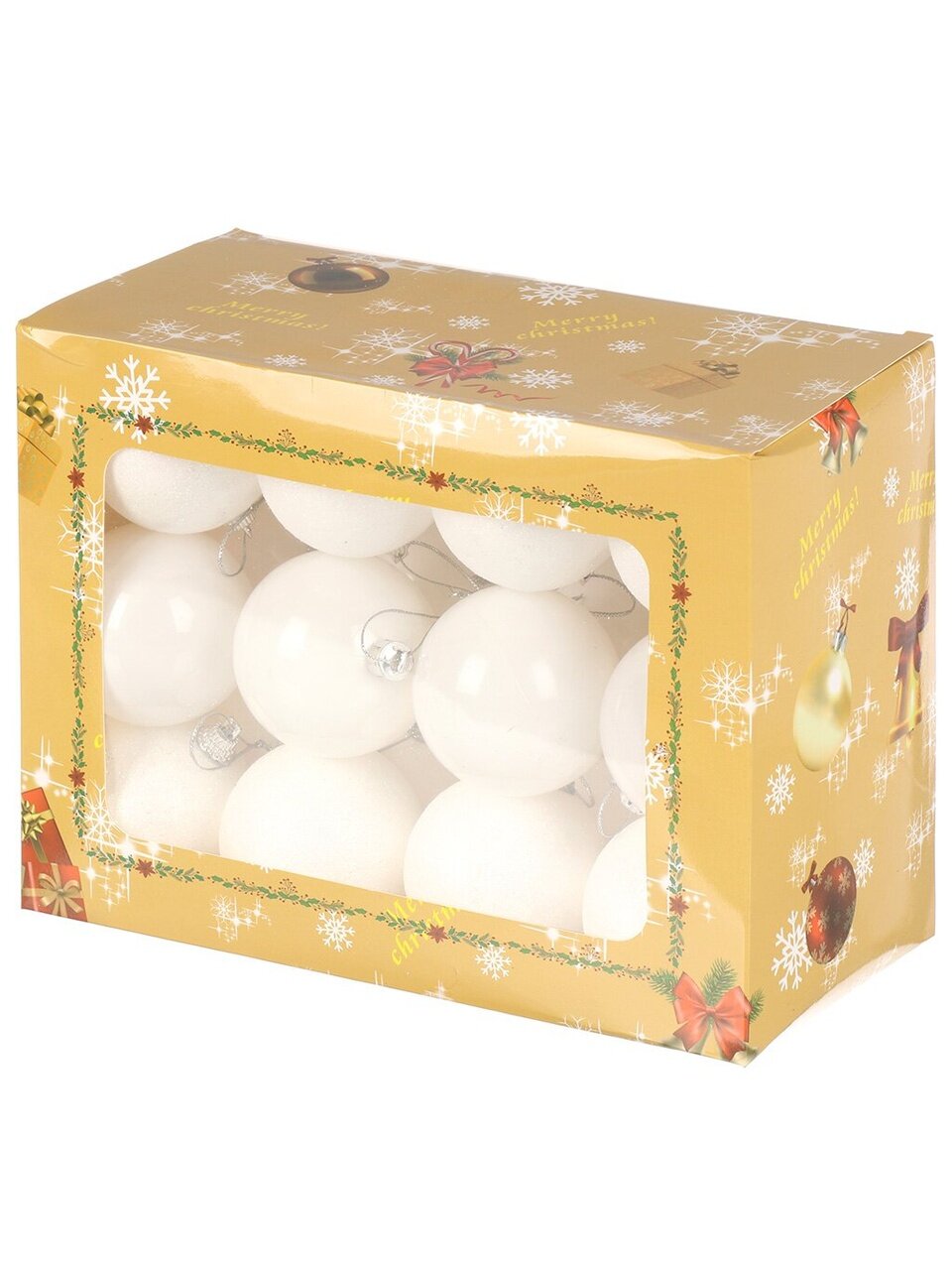 Набор белых шаров 24 шт Y4-8456: небьющиеся, универсальные, в стильной коробке — оформите интерьер и елку без хлопот и лишних затрат.