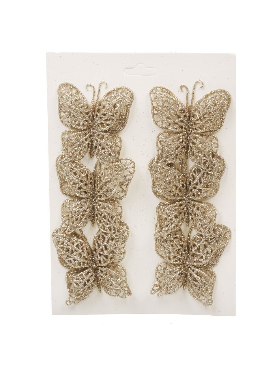 Эффектный набор елочных украшений Бабочка, 6 шт: золото, 7 см — создайте праздничный интерьер без риска разбить игрушки, быстро и недорого!