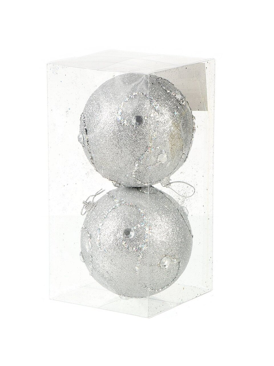 Серебристые шары 10 см (набор 2 шт, Y4-8507): стильный декор для уличной елки, который не разобьется и прослужит не один сезон.