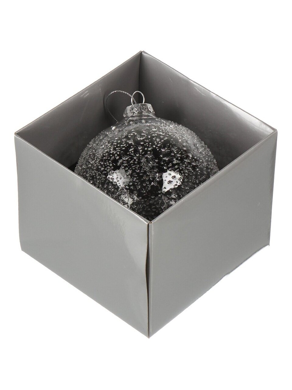 Диаметр — 10 см, материал — прозрачное стекло. Шар среднего размера, подходит для большинства ёлок.