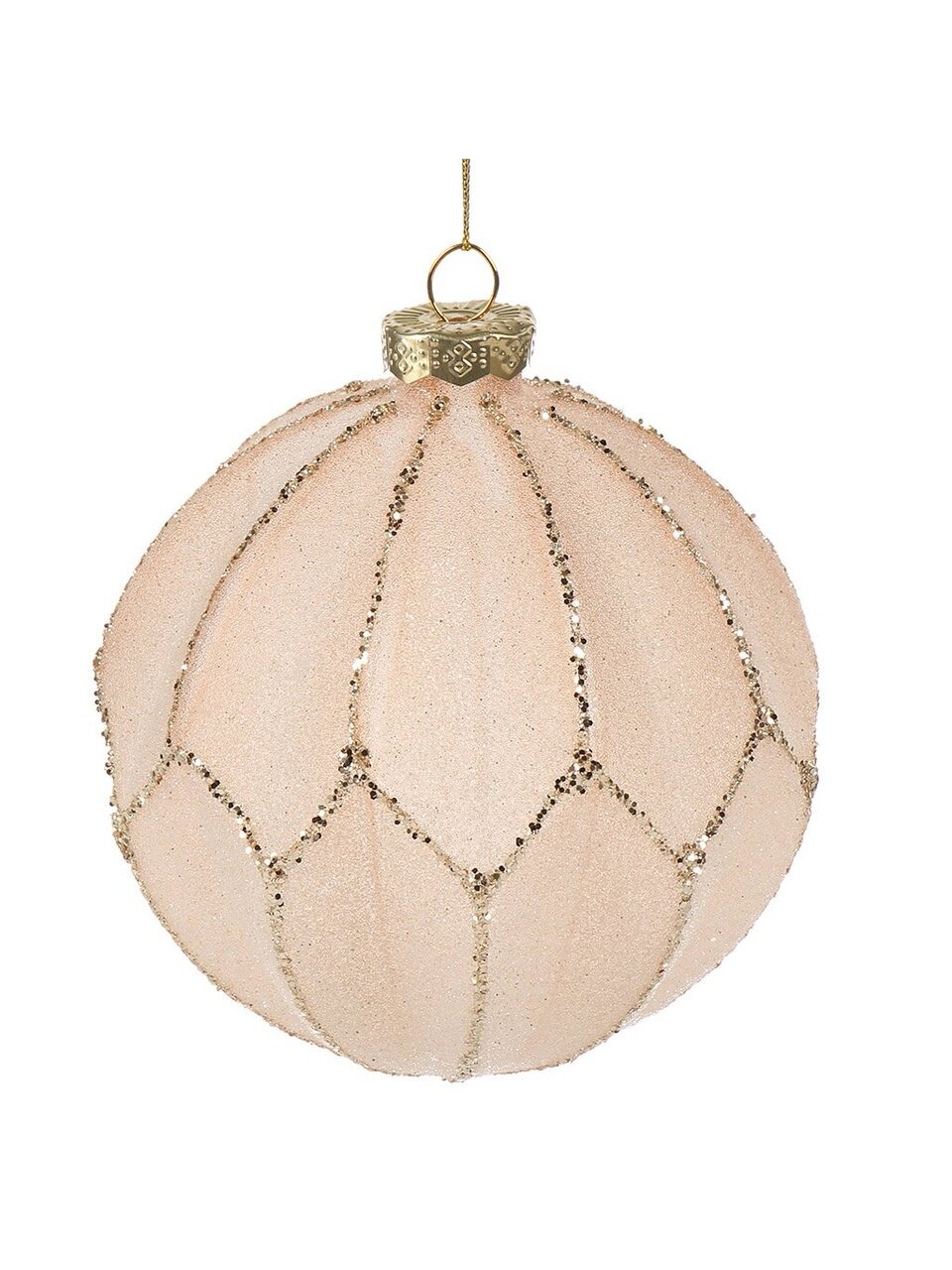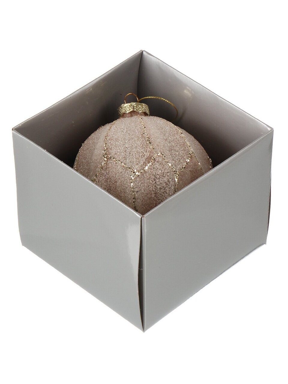 Елочный шар Барокко 10 см из стекла — стильный акцент для новогодней ёлки: премиальный кремовый цвет, блестящее покрытие, идеален для подарка и декора дома.