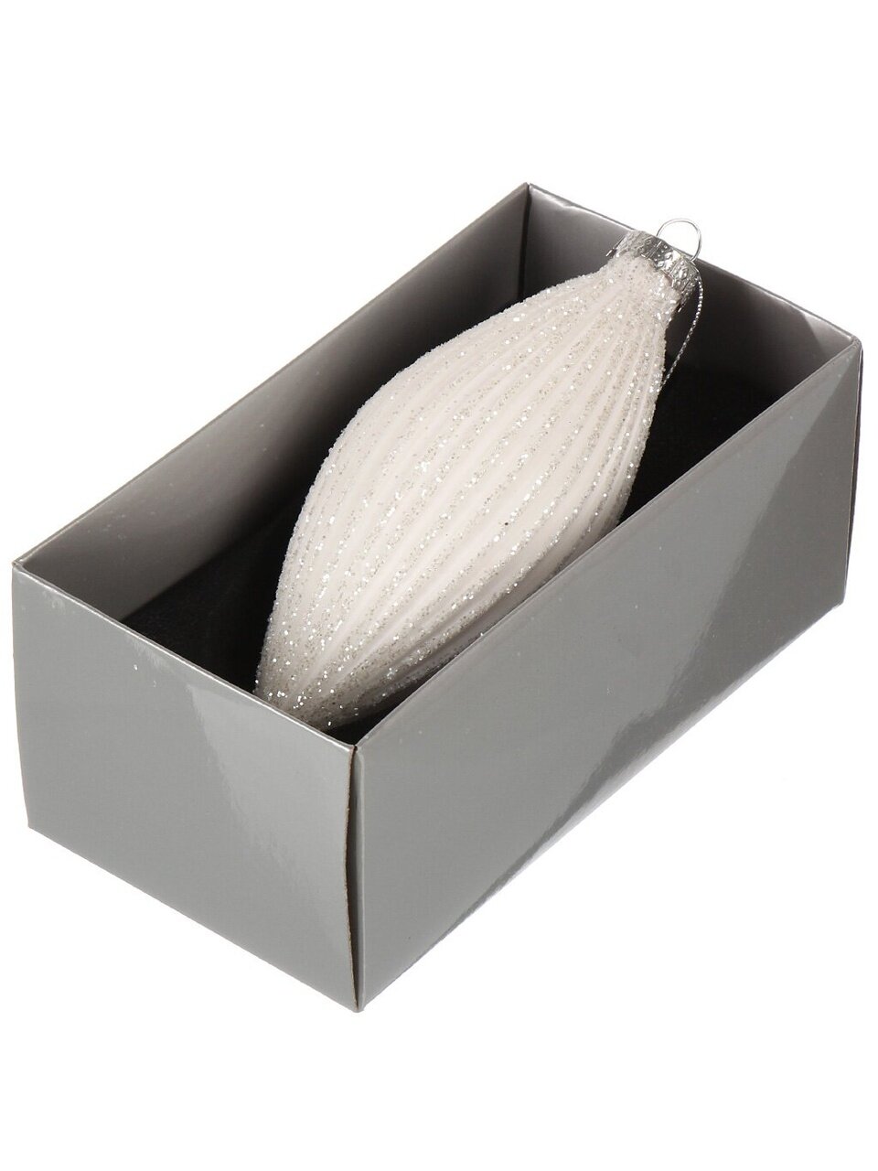 Елочное украшение «Веретено Серебристые грани» — стильный акцент для новогодней елки: стекло, белый цвет, блестки, размер 6х13 см. Идея для подарка и декора.