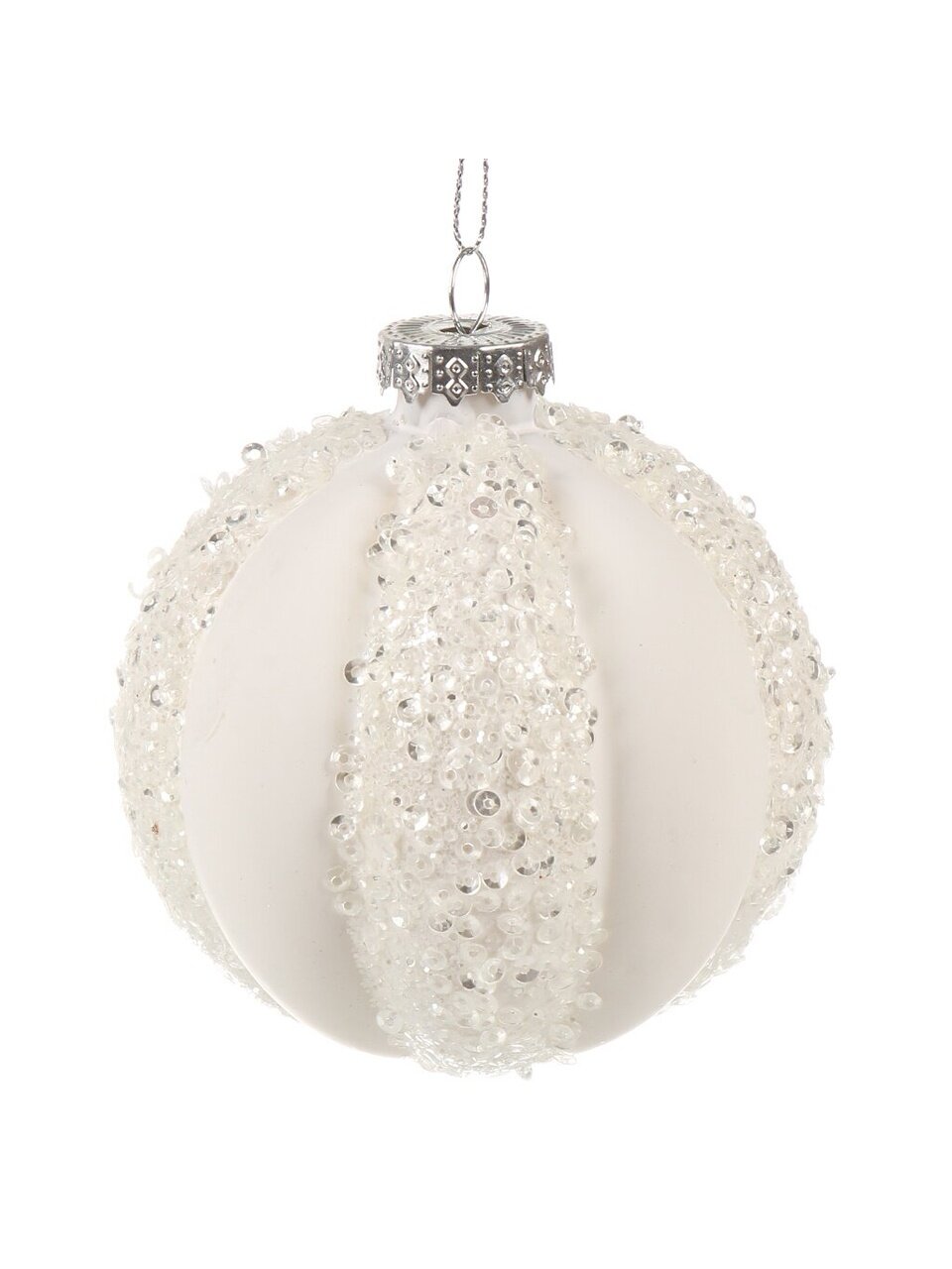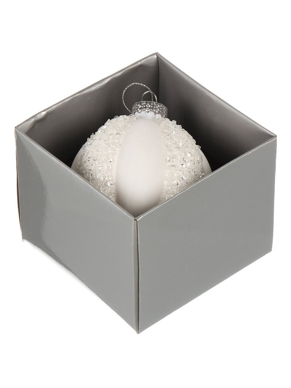 Елочный шар «Снежок» 8 см из стекла — эффектный белый декор с блестками для стильной елки. Идея подарка и уют в доме без переплат.
