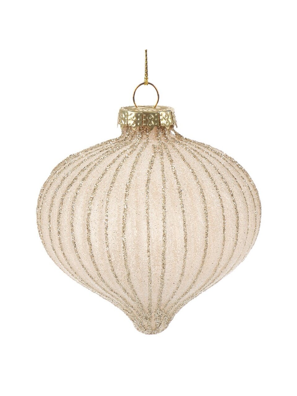 Елочное украшение Луковица Грани 8 см из стекла с пудровыми узорами — стильный акцент для новогодней елки: премиальный декор, долговечность и универсальность.