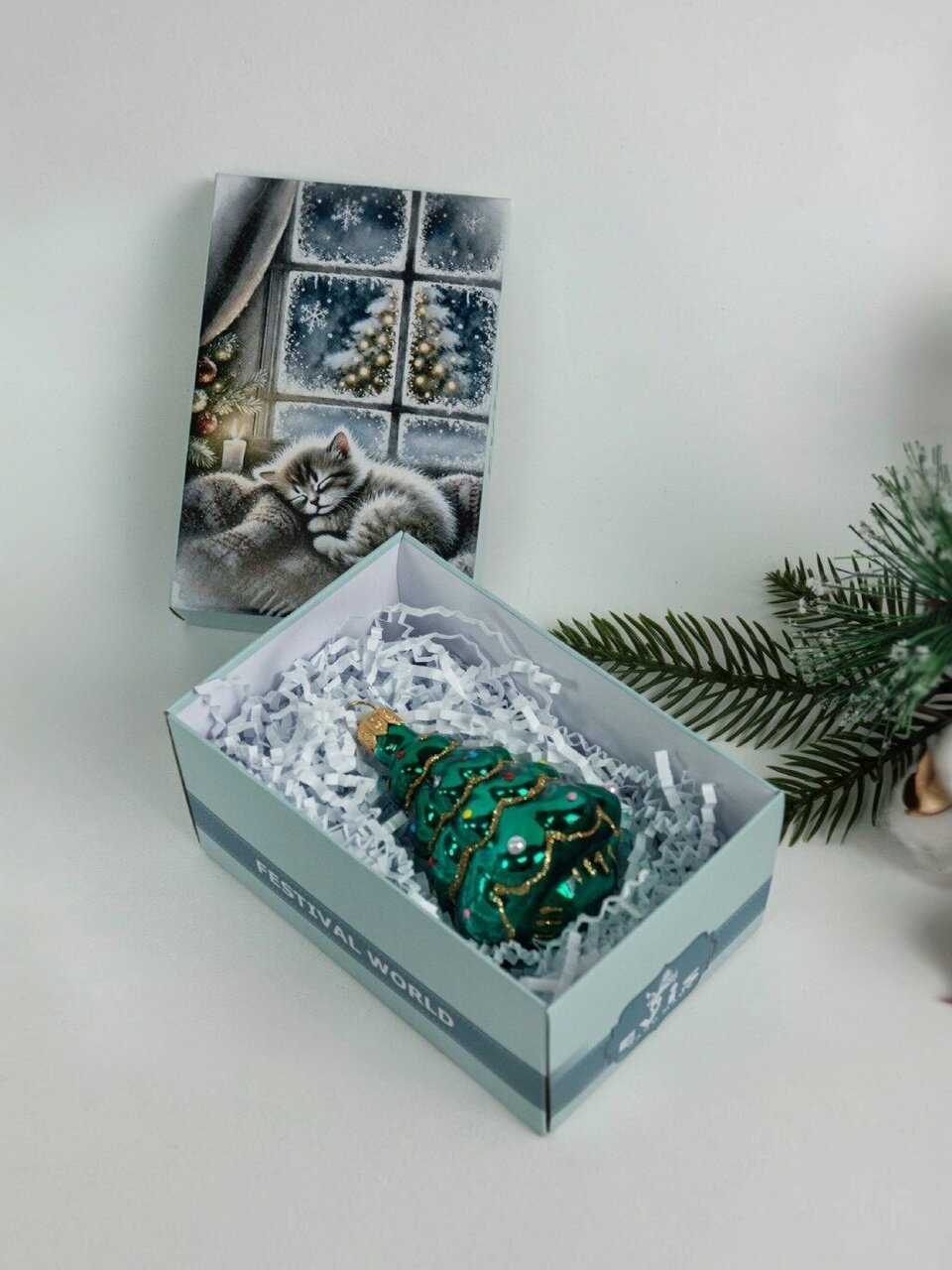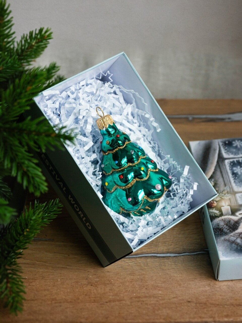 Елочное украшение Evis «Елочка Пушистая» 5.5х8 см: стеклянная мини-игрушка с ручной росписью для стильного декора и подарка — купить выгодно онлайн