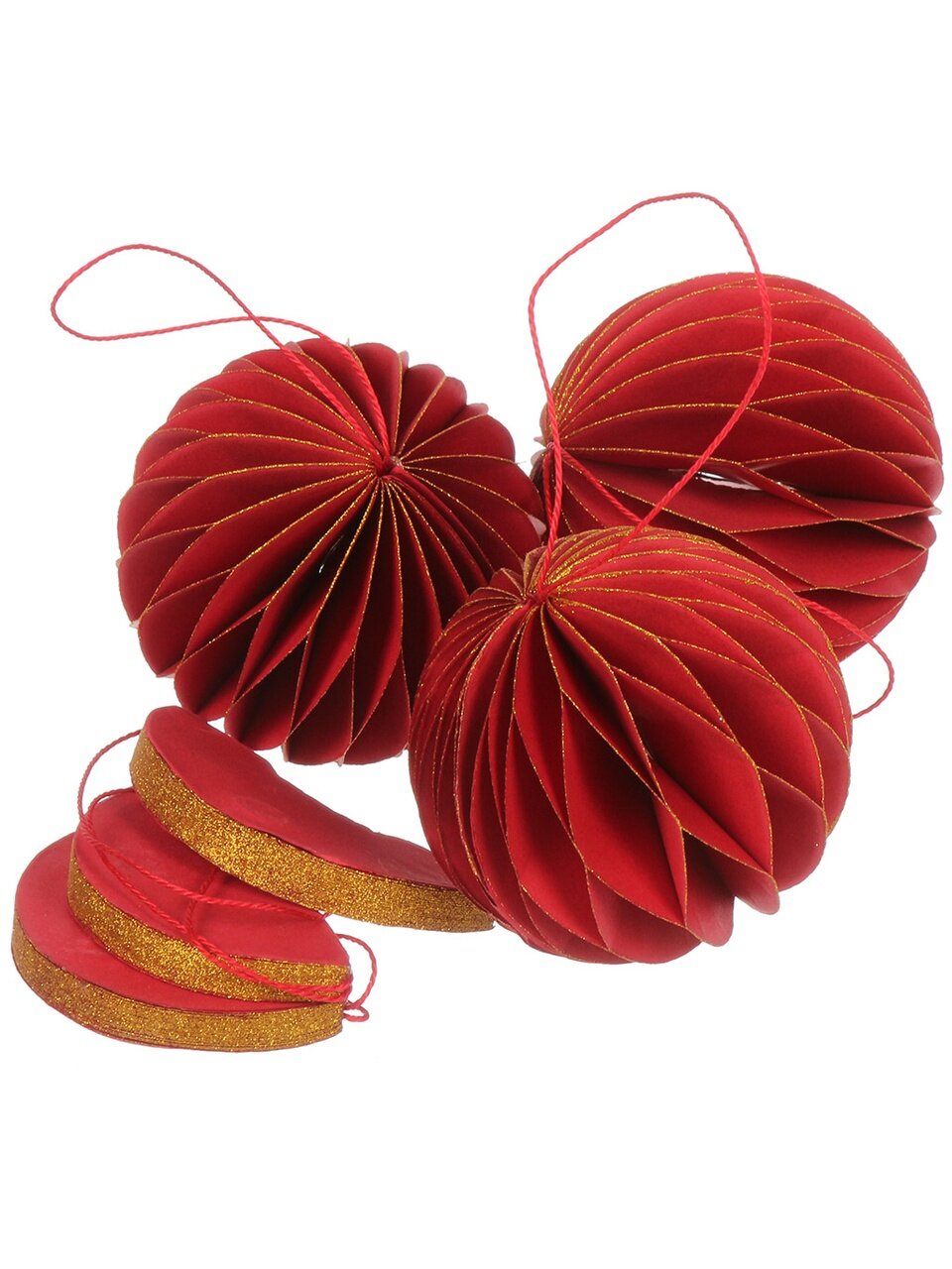 Яркие красные шары из бумаги с блеском — безопасное и стильное решение для украшения елки, дома или дачи. В наборе 6 небьющихся декоративных шаров: создайте волшебство без лишних затрат!