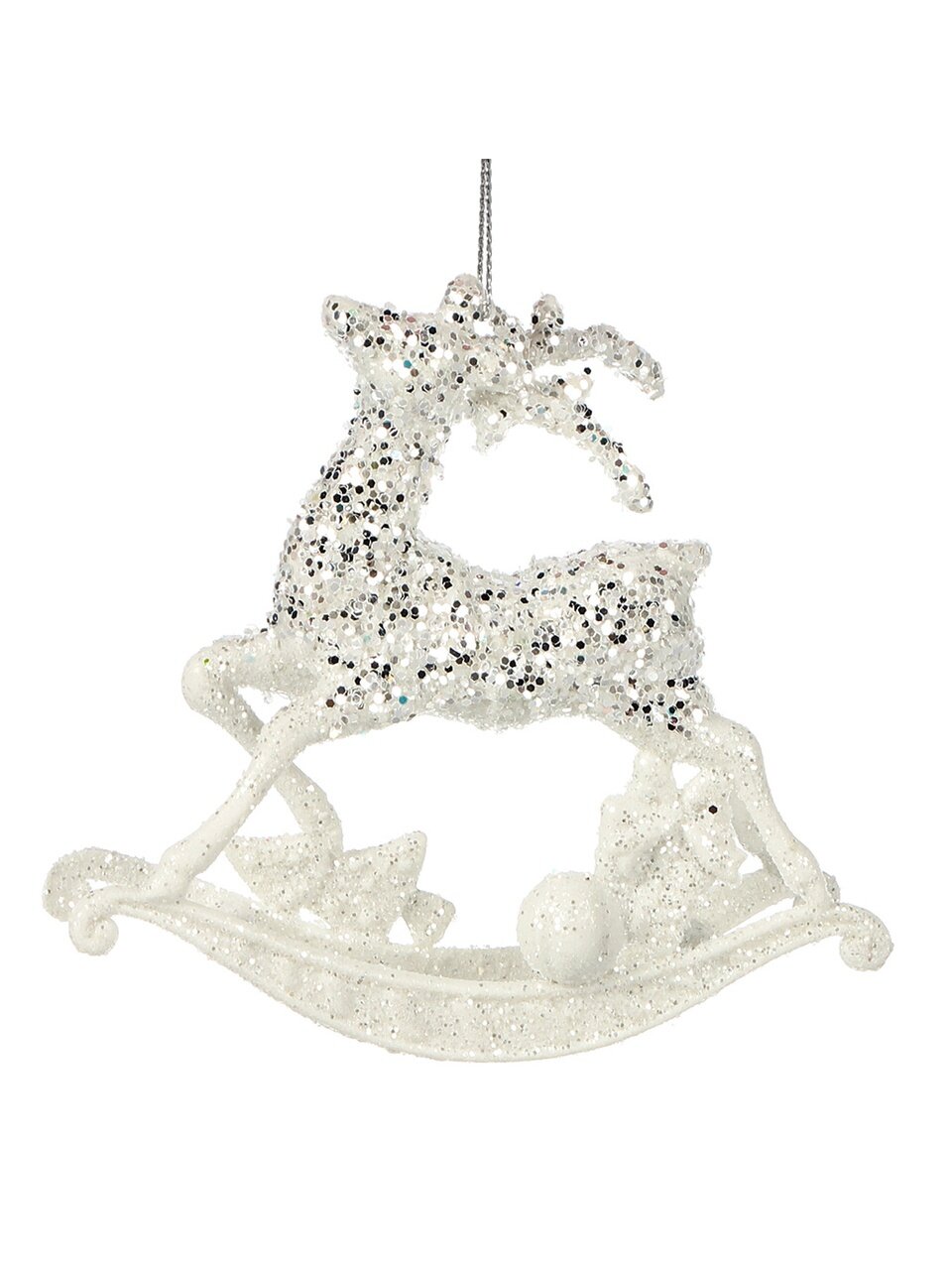 Элегантное елочное украшение "Олень" (белый с серебром, 11 см): стильная защита от разбитых игрушек для дома, улицы и подарков — прочный пластик, блеск и универсальность.
