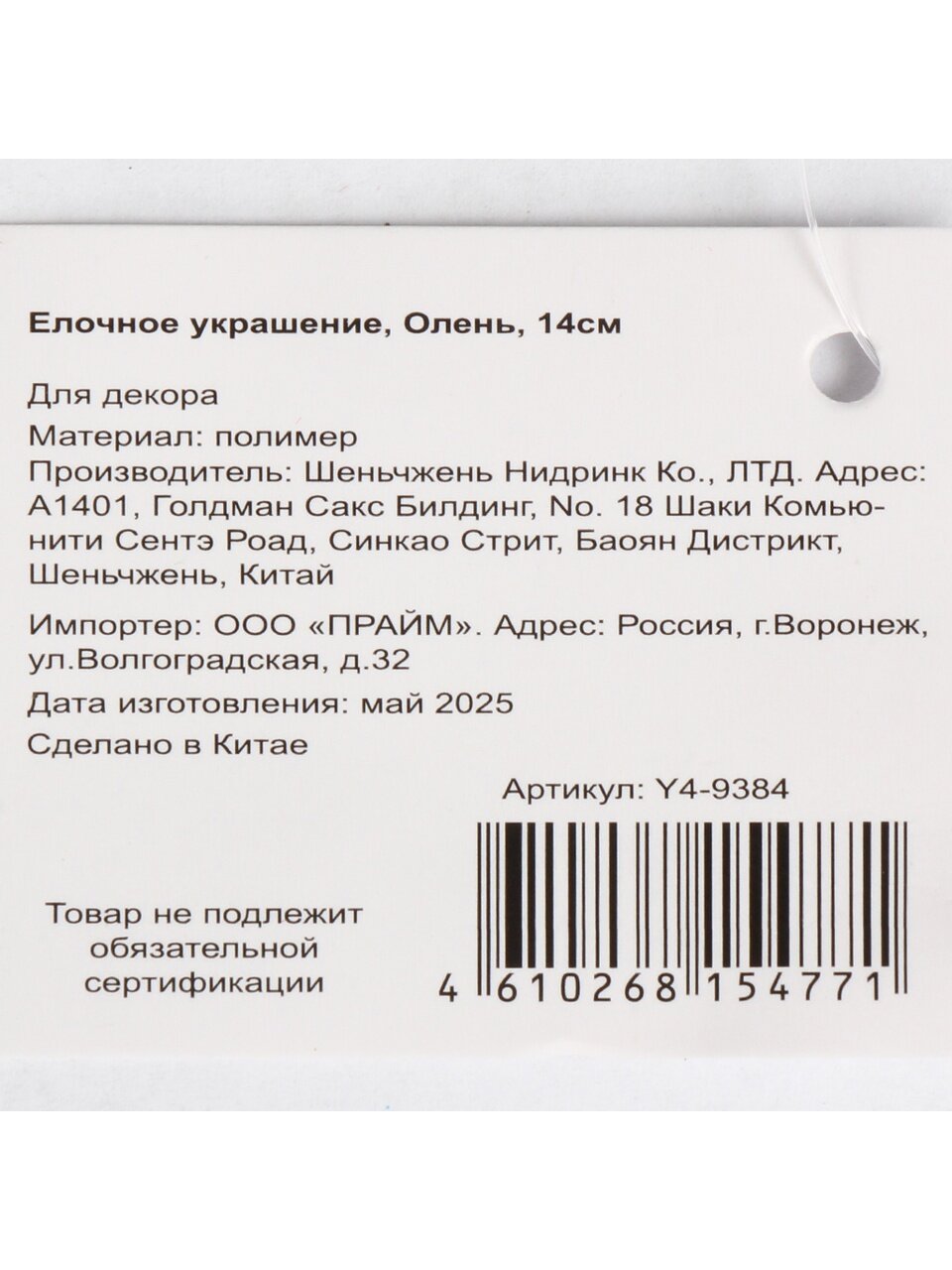 В комплекте 1 фигурка оленя, артикул Y4-9384, тип крепления — подвеска, набор не предусмотрен.