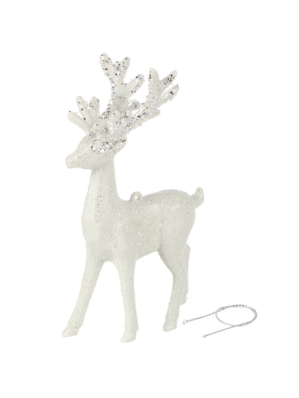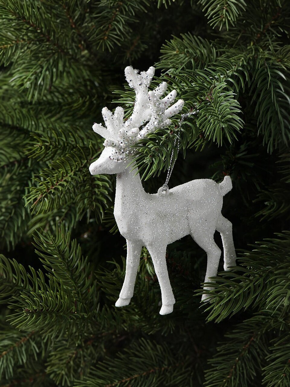 Белый олень с серебром 16 см — небьющийся ёлочный декор для стильного интерьера и уличной ели. Безопасно, эффектно, выгодно для подарка и украшения дома.
